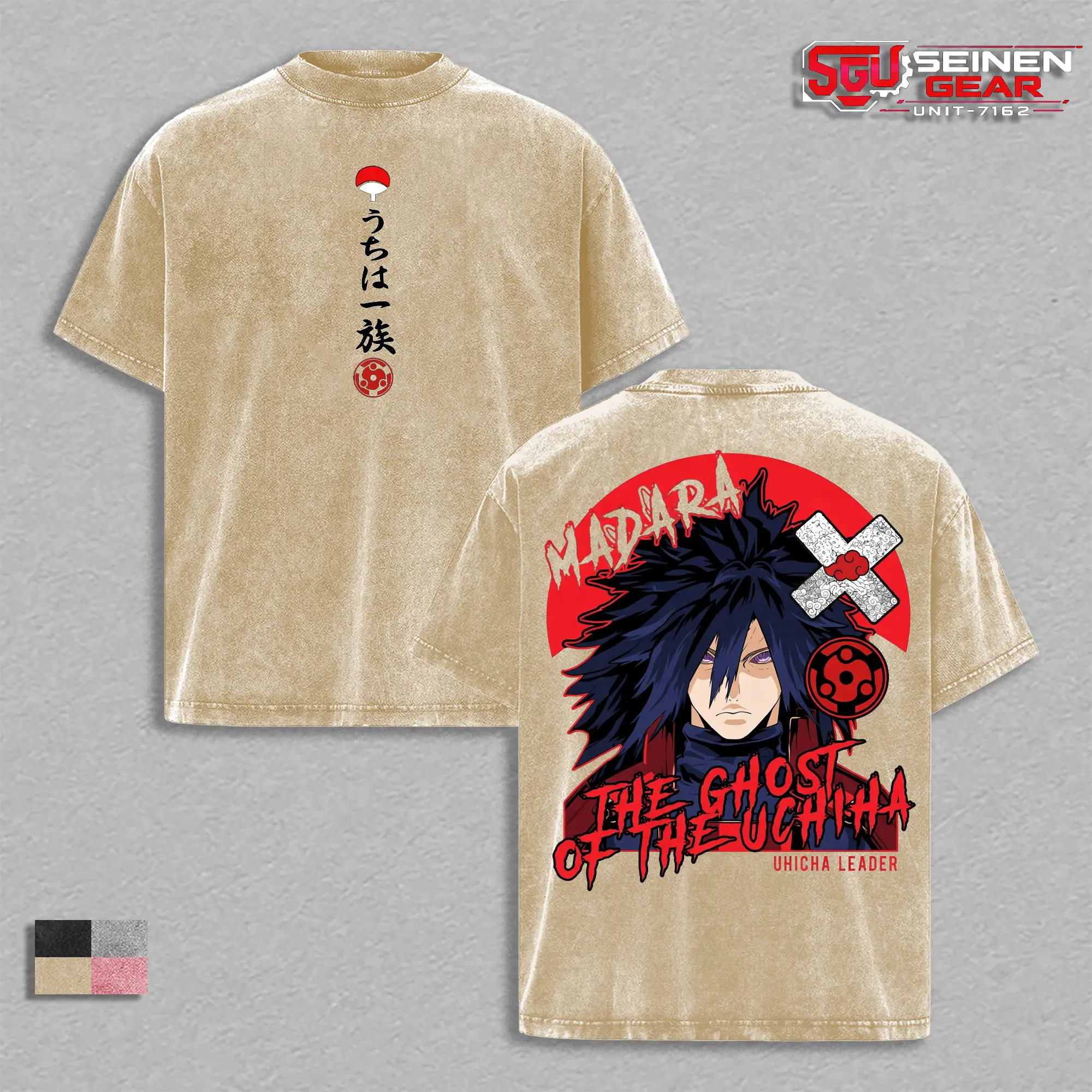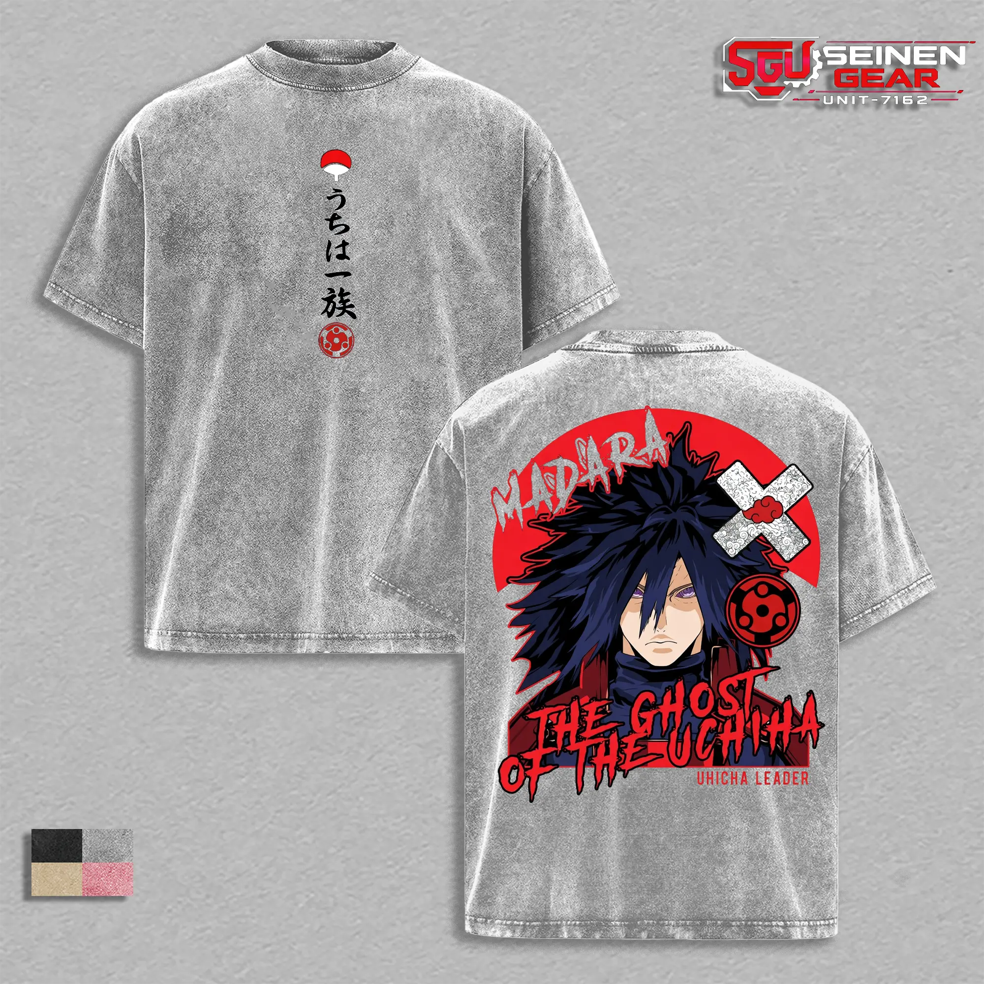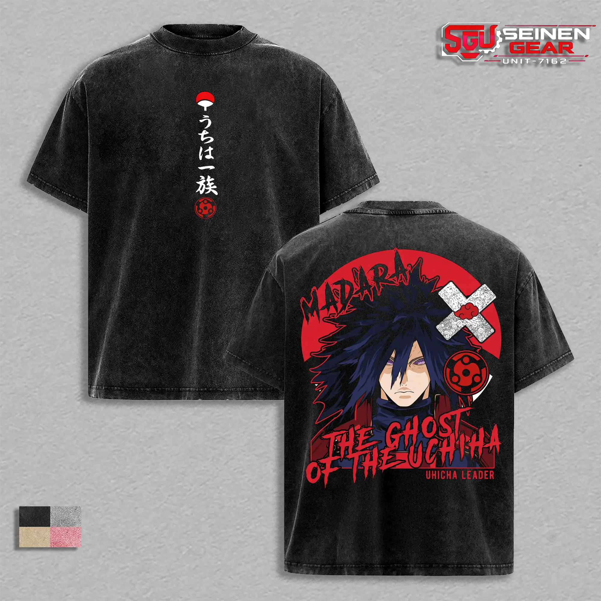 Madara Ghost of the Uchiha Back Print Vintage Washed Oversized T-Shirt, Naruto Anime Streetwear Graphic Tee, Heavyweight Cotton Men’s Clothing Gift for Him Summer Outfit