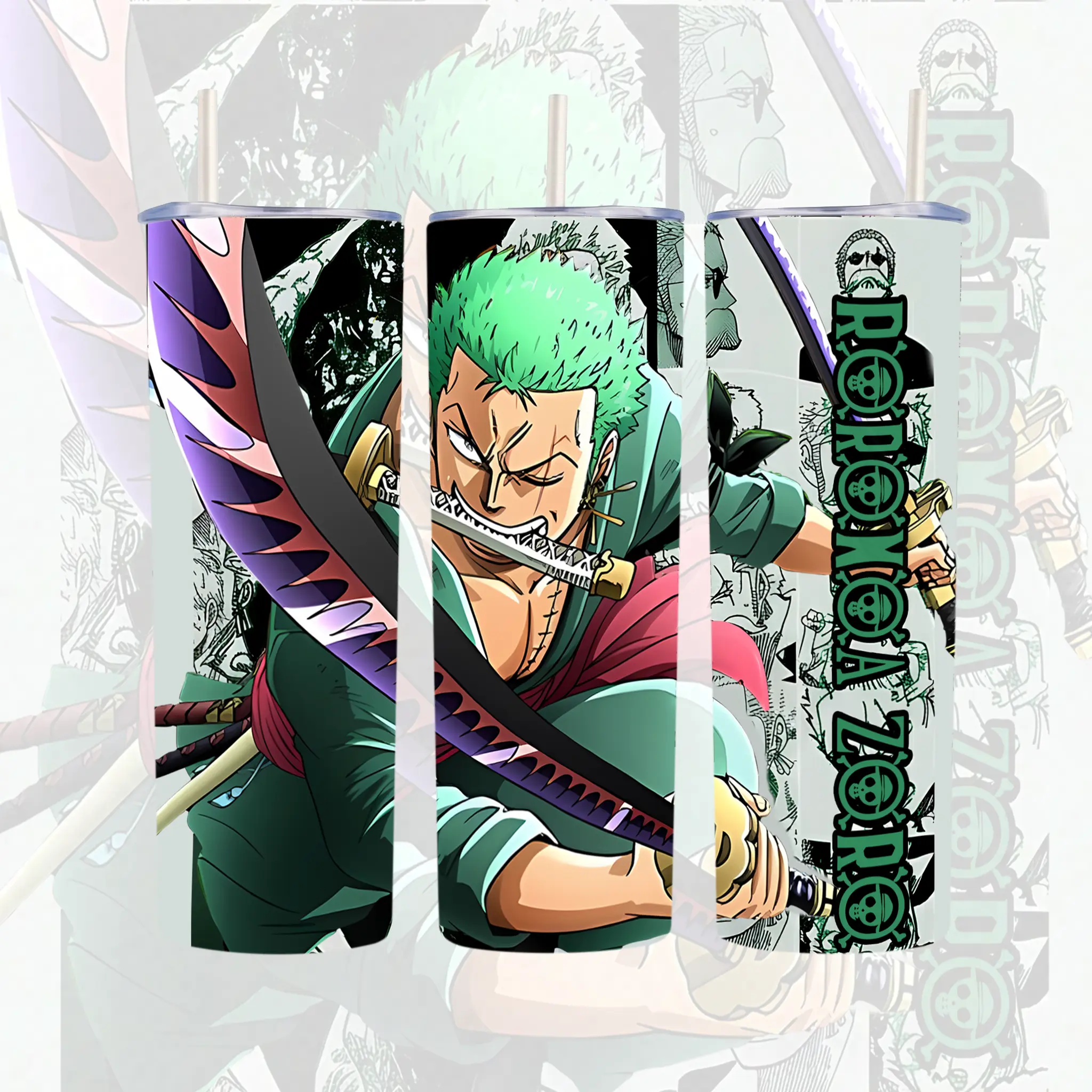 5. [One Piece] Roronoa Zoro “Pirate Hunter” Three Sword Style 20oz & 40oz Tumbler With Handle – Anime Gaming Stainless Steel Cup, Insulated Iced Coffee Mug, Aesthetic Design, Trendy Drinkware, Daily Use, Gift Idea, Fan Favorite, Gift For Otaku & Anime Fans