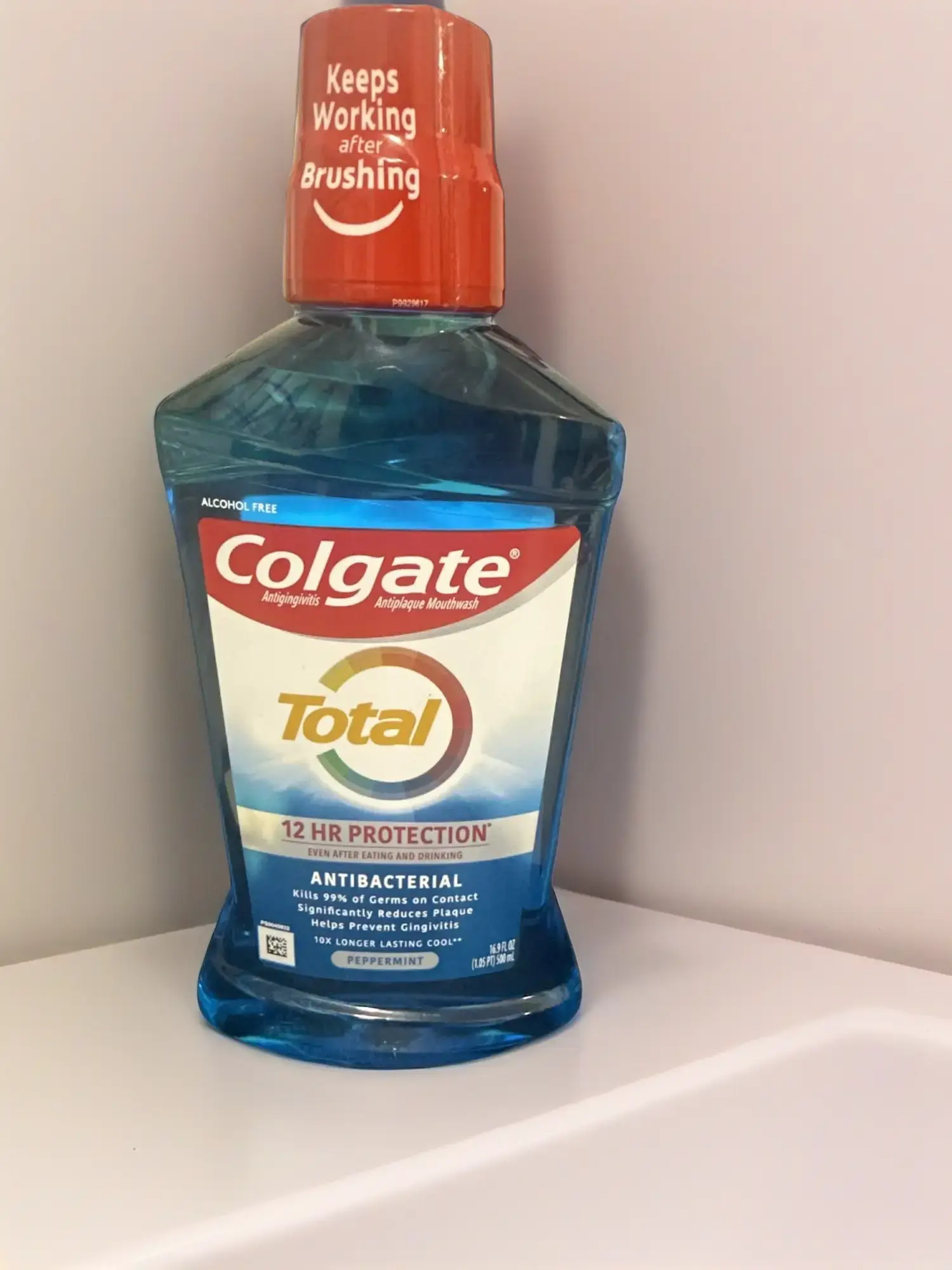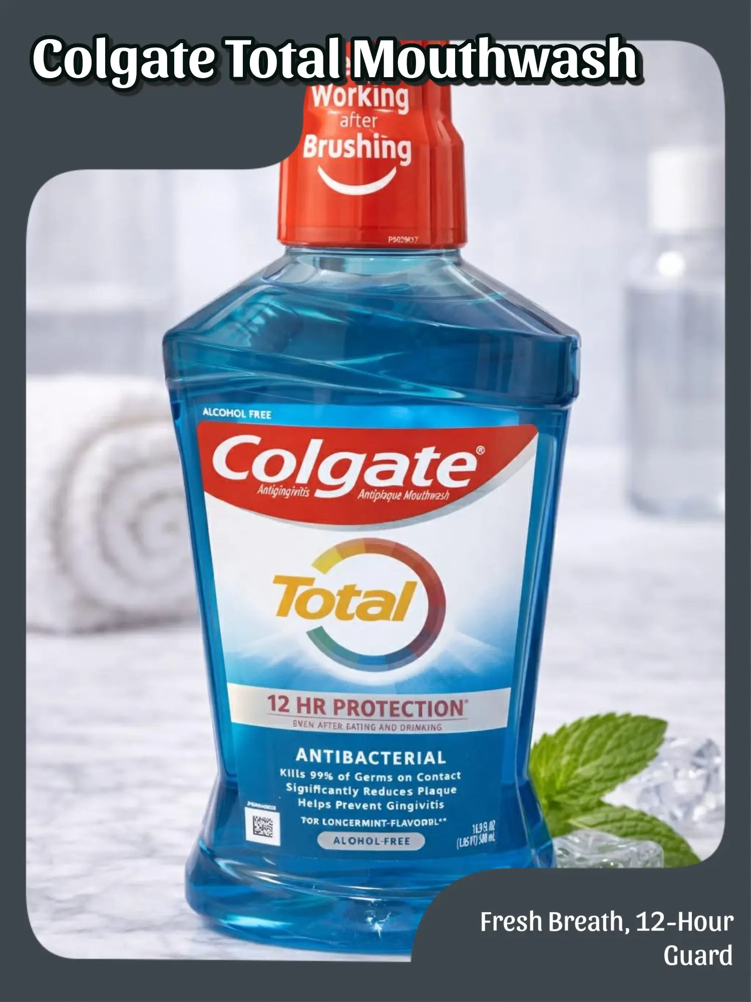Upgrade your oral care routine with Colgate Total Antibacterial Mouthwash, designed to provide powerful, long-lasting protection for a healthier mouth. This alcohol-free formula helps kill 99% of germs on contact while working beyond brushing to keep your mouth clean and fresh. With 12-hour protection, this mouthwash helps fight plaque buildup and supports gum health, reducing the risk of gingivitis. The refreshing peppermint flavor delivers a cool, clean feeling that lasts throughout the day.