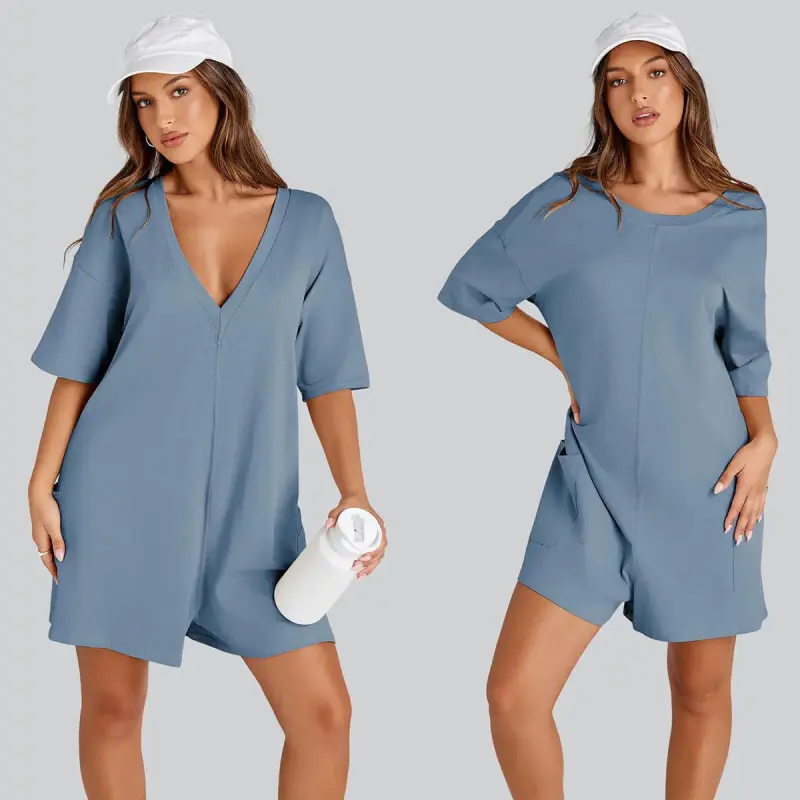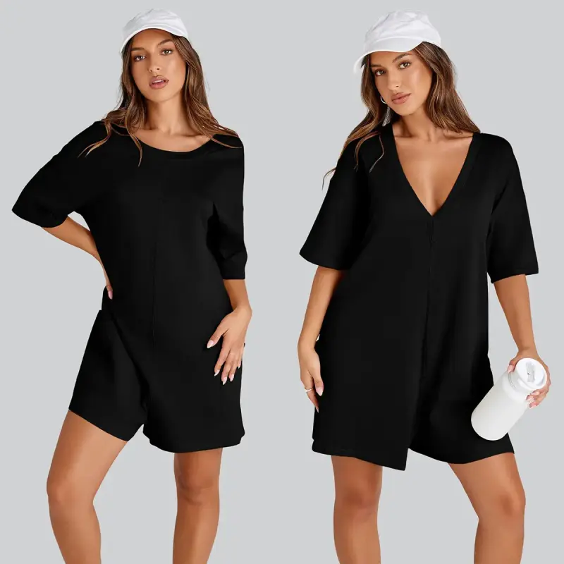 Rompers for Women Casual Oversized Athletic Jumpsuits Overalls Workout Hot Shot Tee Romper Round Neck Cute Shirt Womenswear