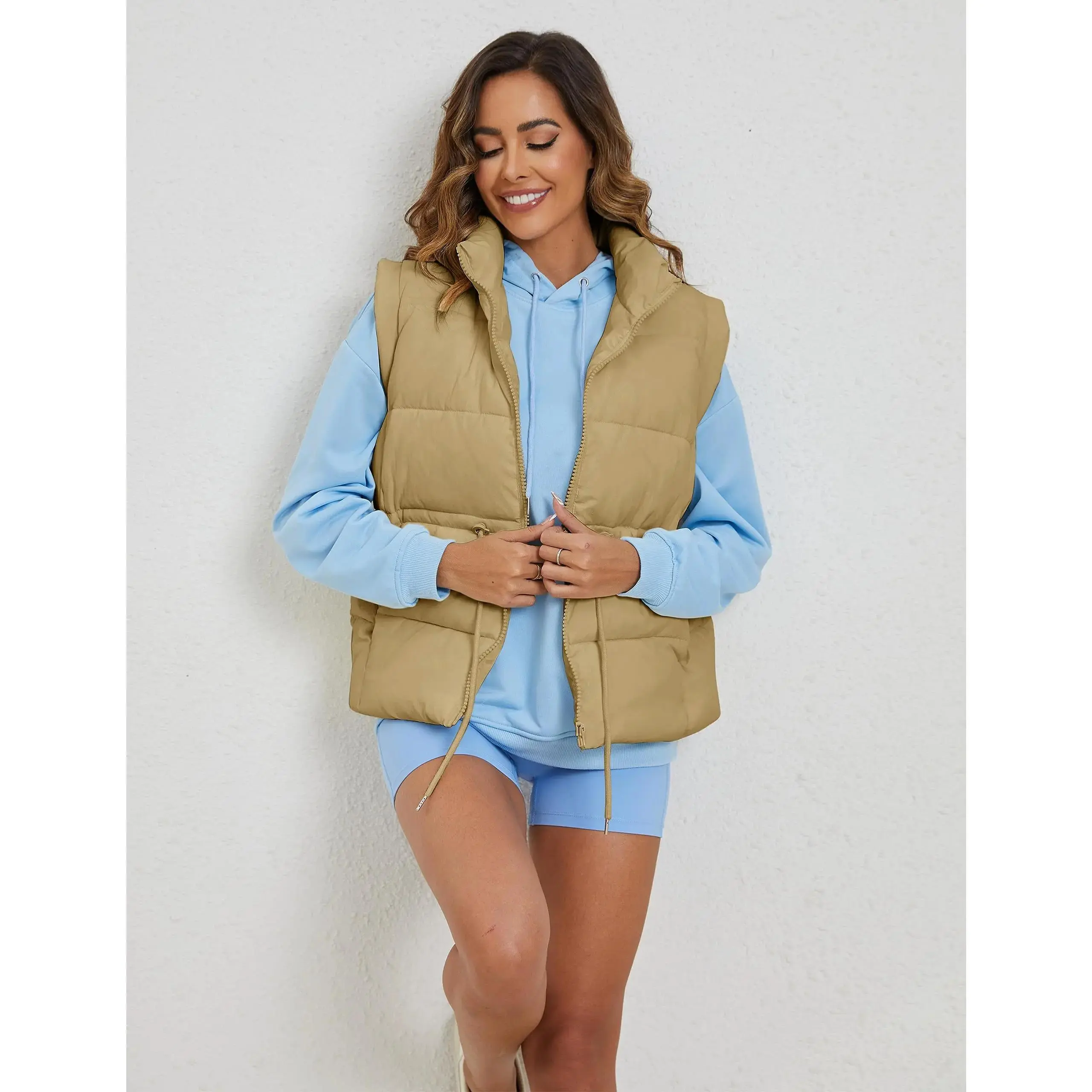 Women's Puff Vest Winter Drawstring Stand Collar Full Zip Sleeveless Padded Gilet