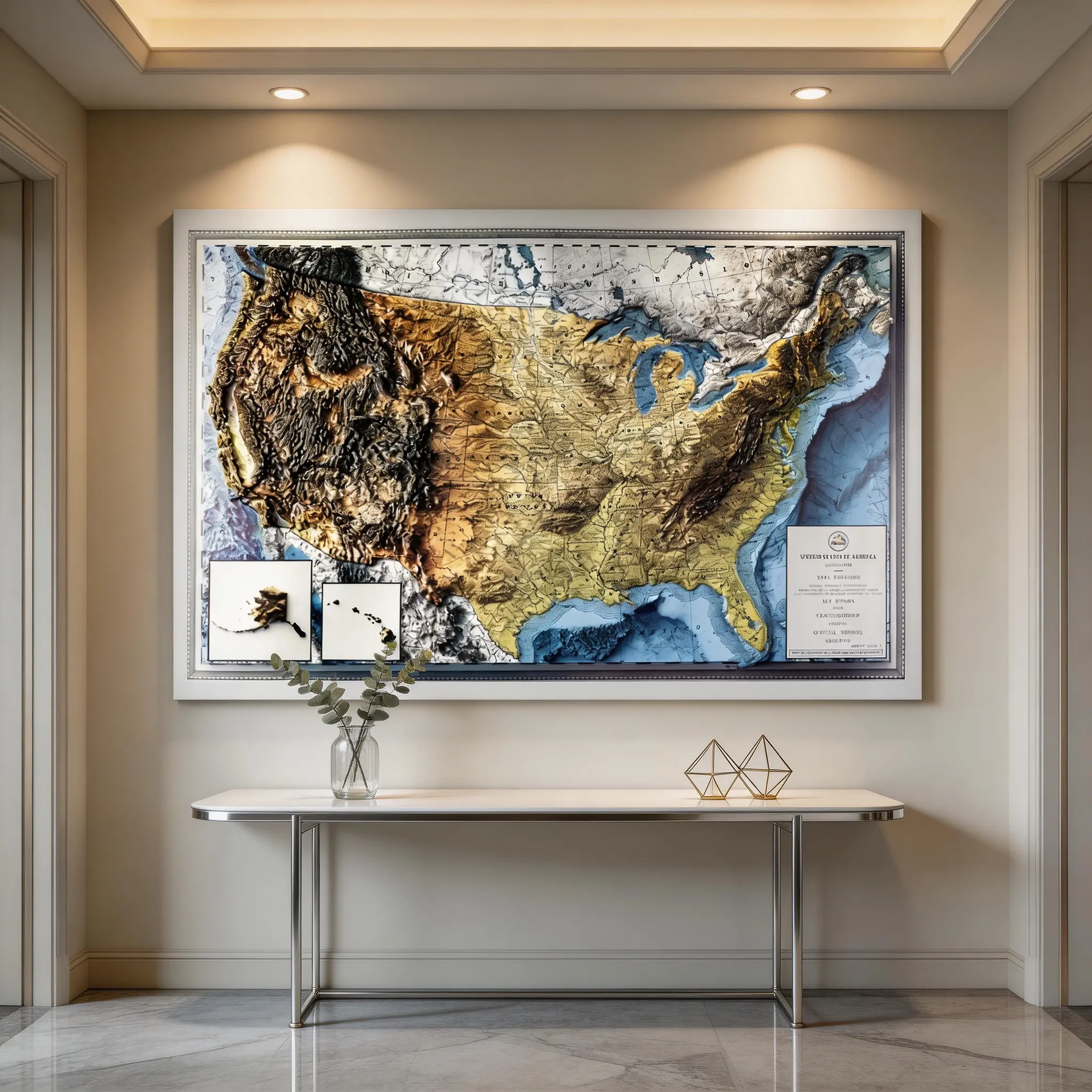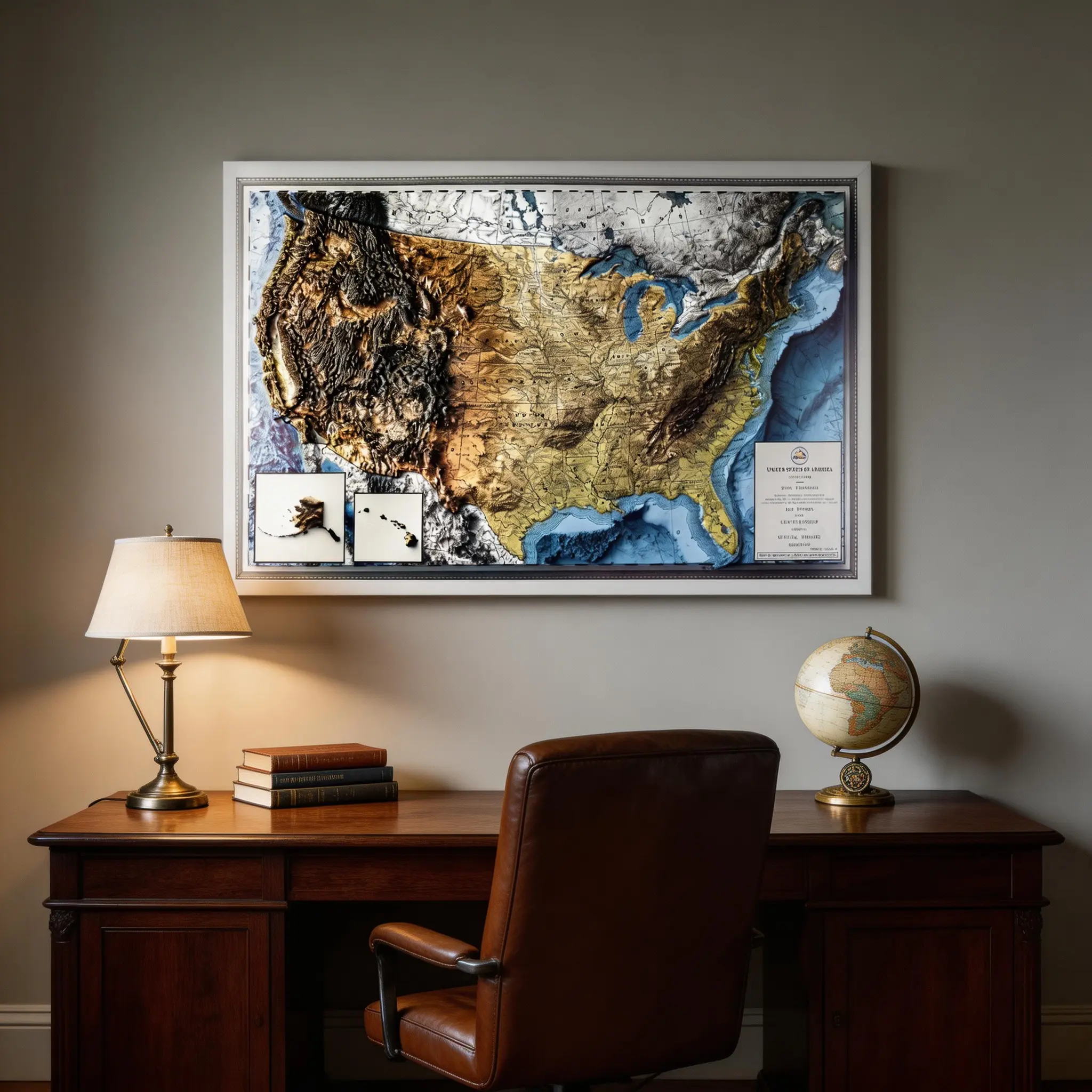 This 3D USA map features true raised relief terrain, premium craftsmanship, and timeless style, making it a striking piece of wall decor for your home, office, or study and a thoughtful gift for map lovers, travelers, and anyone who appreciates unique design.