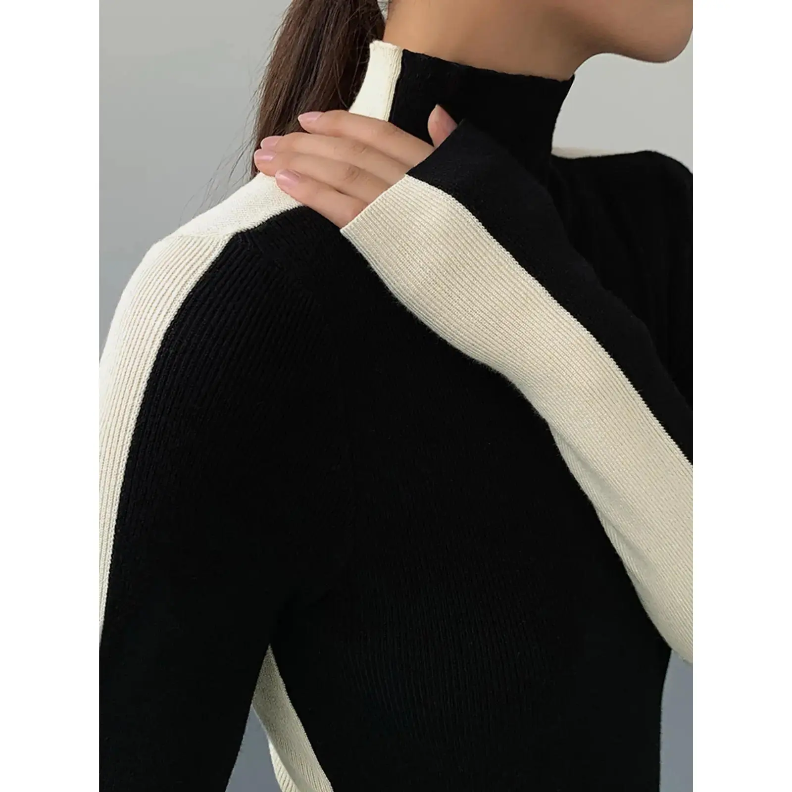 Two Tone Double Sided Long Sleeve Knit Top