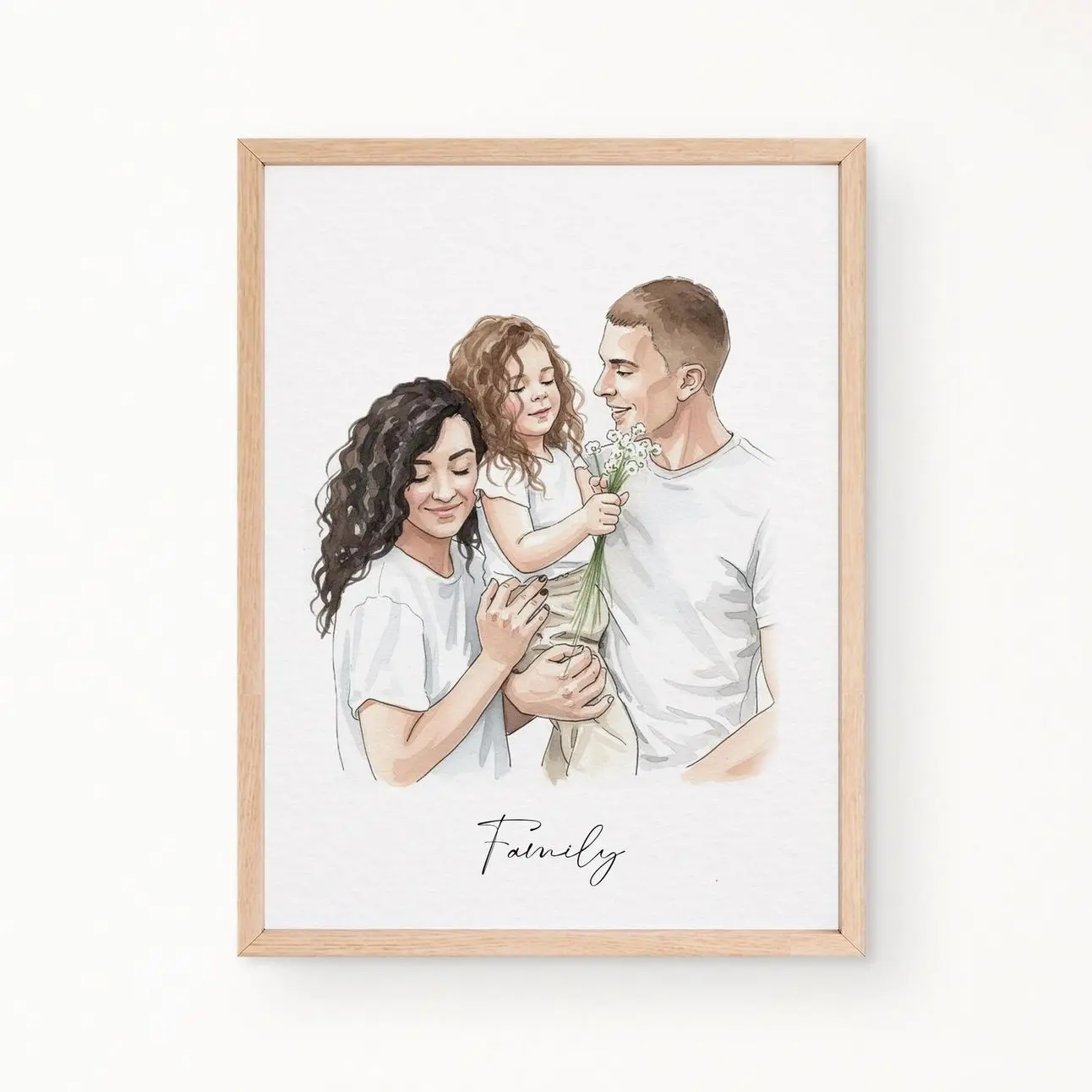 Custom Hand-Drawn Painting from Photo, Personalized Watercolor Family Portrait, Mother Father Gift (SEND PHOTO BY MESSAGE TO SHOP)