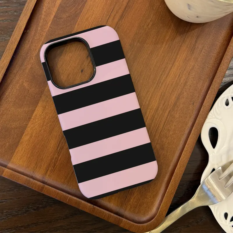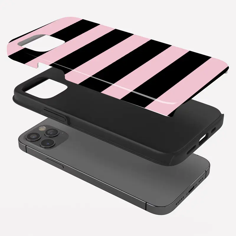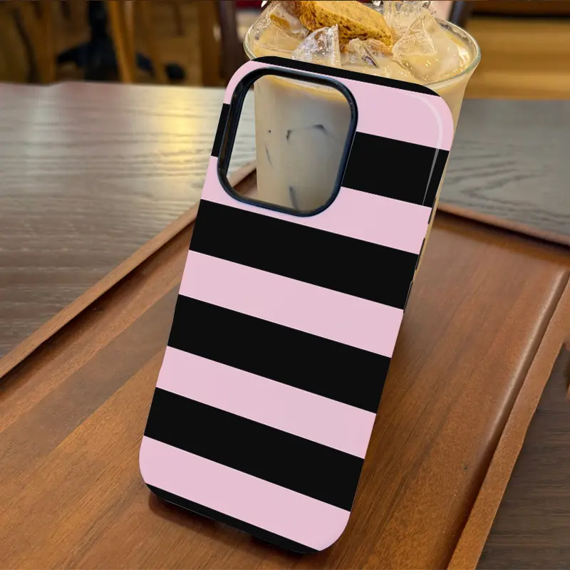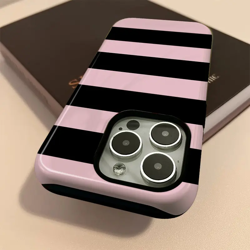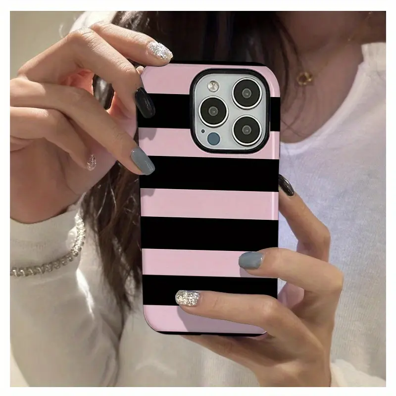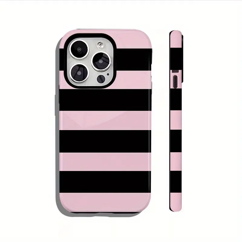 Two-In-One Film Case with Black And Pink Stripes - Stylish, Shock-Resistant, And Long-Lasting Protection - Suitable for Iphone Models 16, 15, 14, 13, 12, 11, Plus, Pro, Max, an Ideal Birthday Present for Shockproof Cover