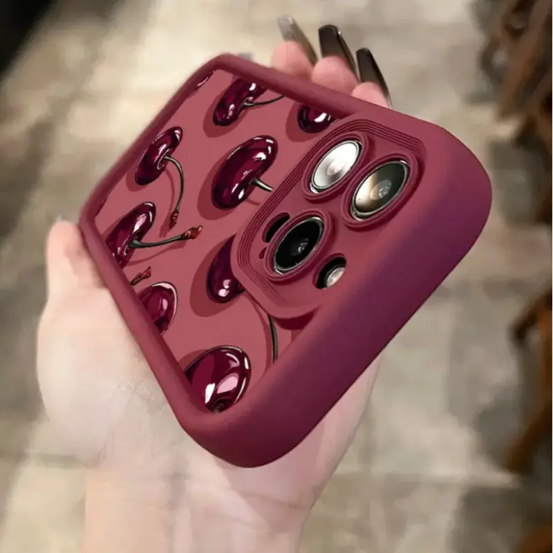 ✨ This phone case features a creative graffiti cherry pattern in deep wine color. The vibrant cherries add a stylish touch, making it a standout accessory. It sets itself apart from standard cases with its unique design. Perfect for those who want to add a touch of flair to their device.