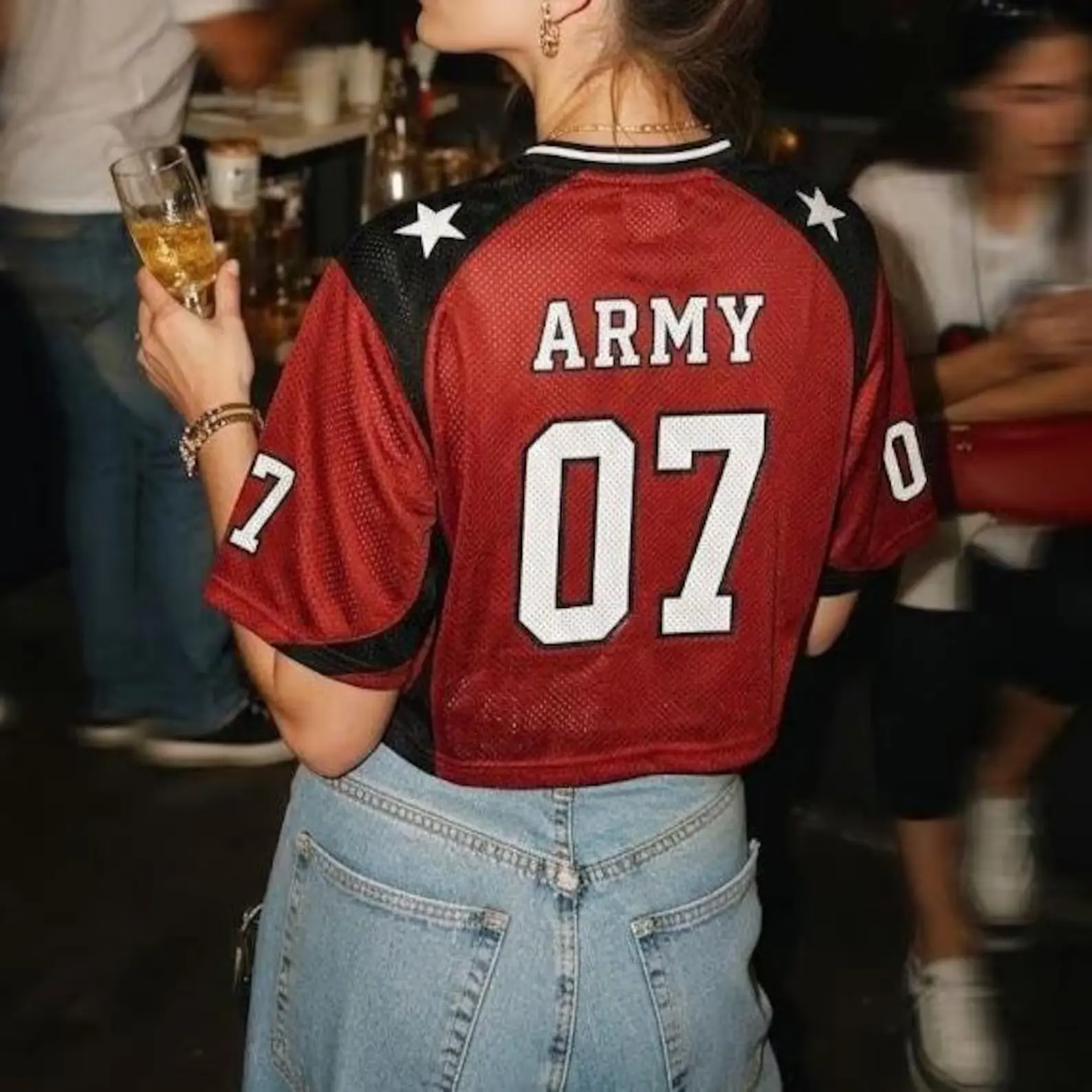 Style Tip:Pair with high-waisted leggings, biker shorts, or matching mesh bottoms for a coordinated game-day or athleisure outfit.