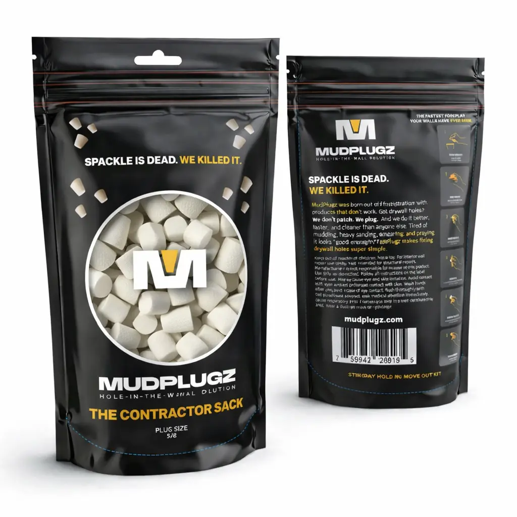 The Contractor Sack by MudPlugz is a bulk drywall repair solution designed for fast, clean wall hole repair. Built for contractors, maintenance teams, property managers, painters, and DIY users, this high-volume bag of repair plugs helps simplify repeated drywall patch jobs without the mess of traditional spackle-based repairs.