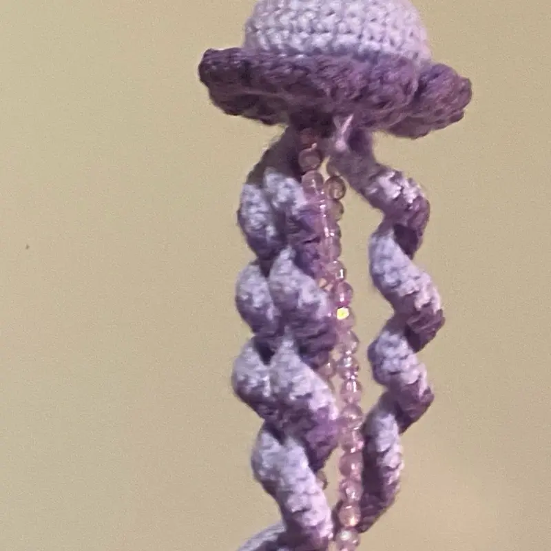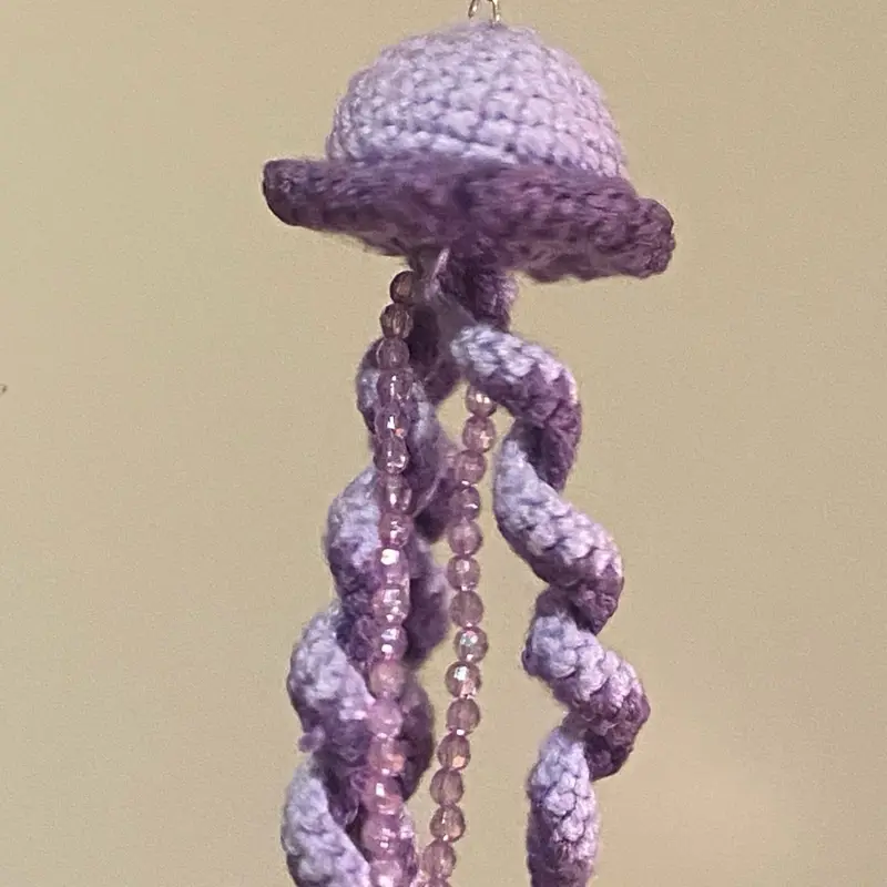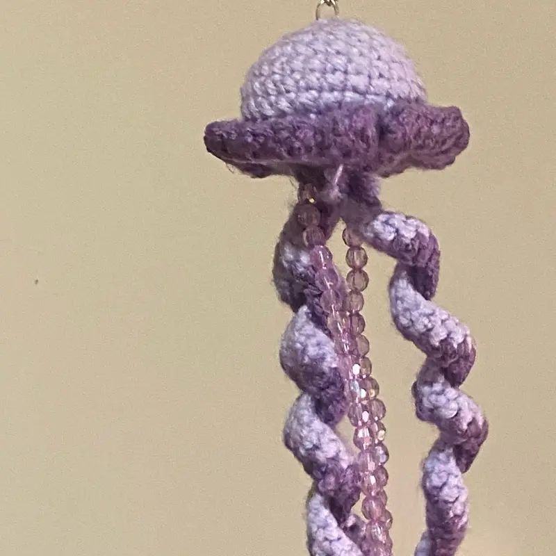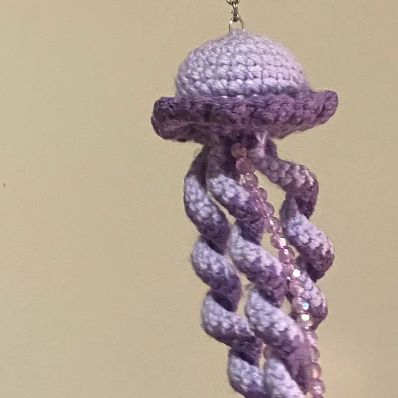 ✨ This keychain features a charming crochet jellyfish design. Perfect for adding a touch of whimsy to your keys. The intricate crochet work brings the jellyfish to life, making it a standout accessory. Ideal for those who love unique, handcrafted items.