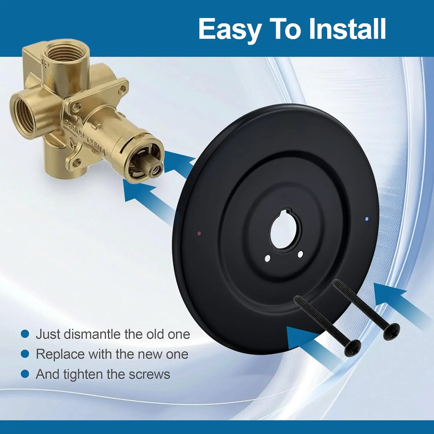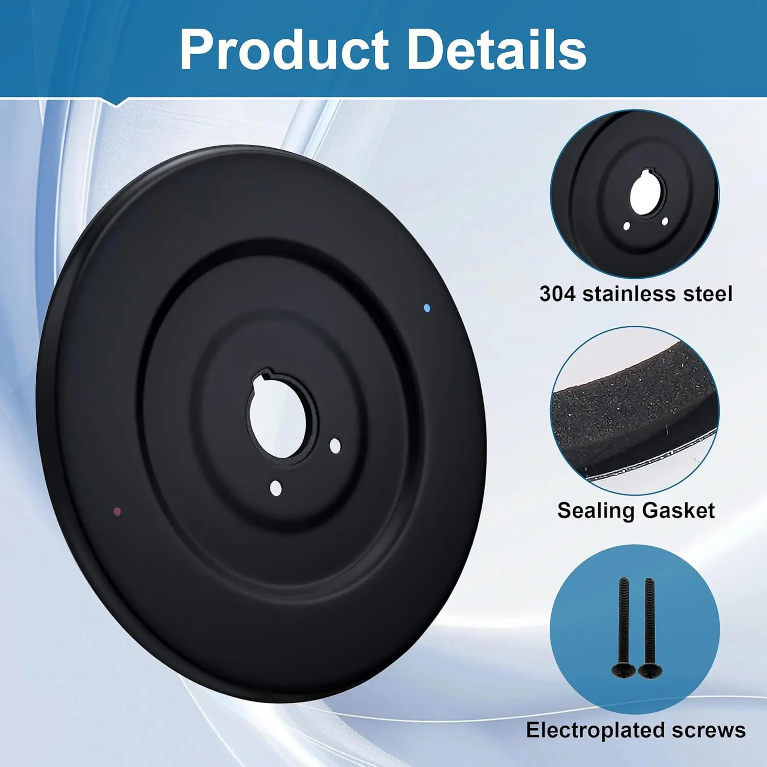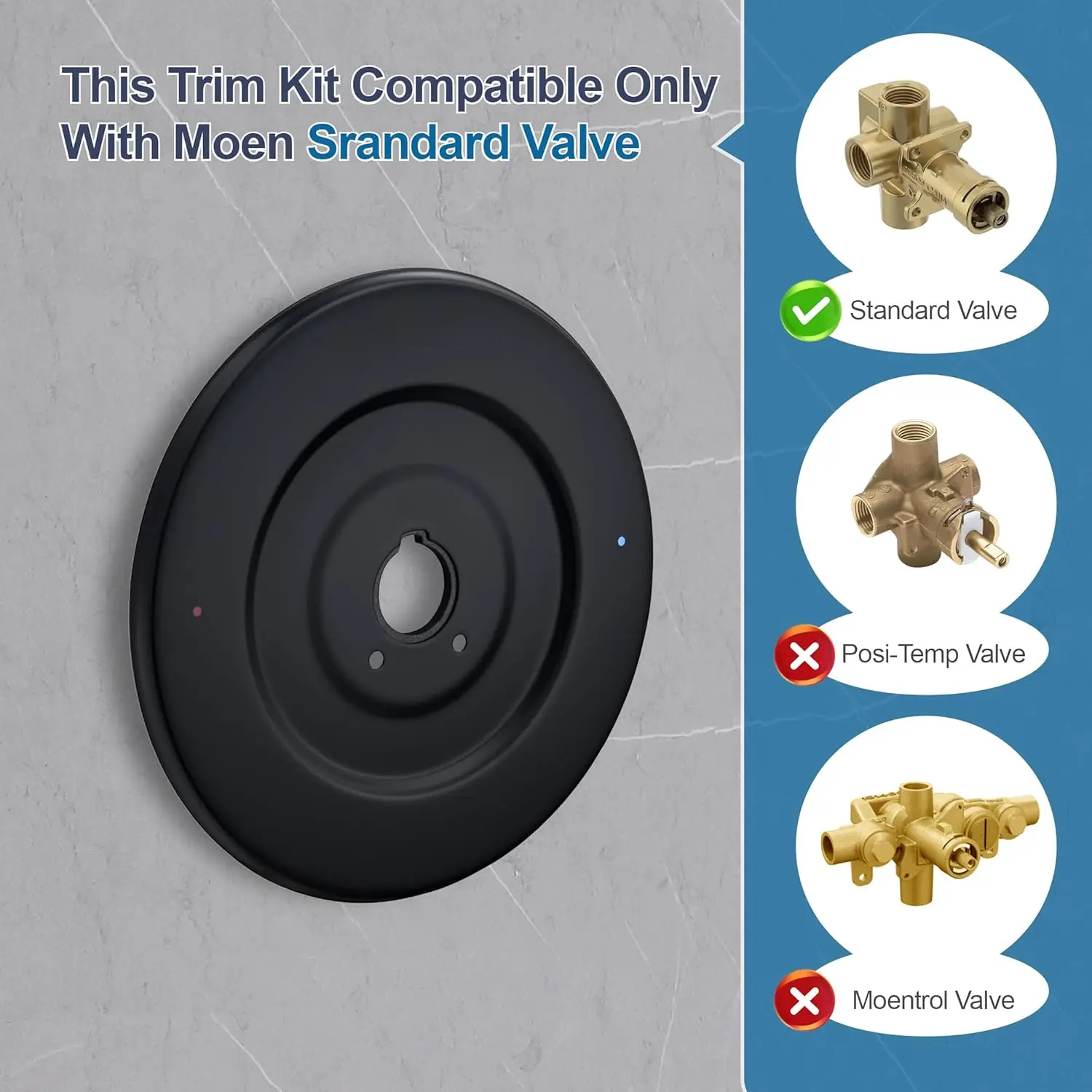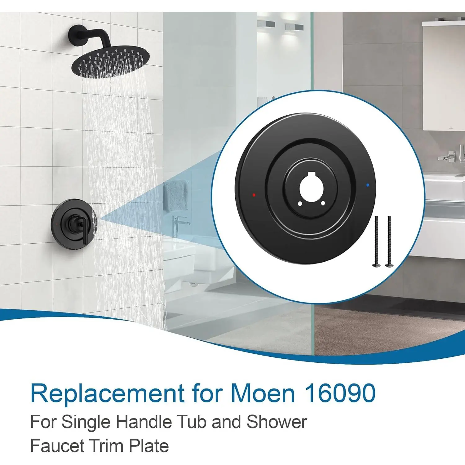 [Premium Metal Construction]This Escutcheon Plate is made of high-quality ABS material, which can withstand the wear and tear of daily use.Ensuring durability and dependability, and can maintain its appearance for a long time[Sealed Design]With a substantial gasket on the back side, this escutcheon effectively prevents water dripping behind the plate, ensuring a leak-proof installation.This feature enhances durability and protects your walls from water damage[Simple Installation]Designed for easy installation between the wall and the tub shower faucet, this escutcheon is compatible with most Chateau one-handle tub and shower faucet sets.Just remove the old plate, install the new one, and tighten the screws for a secure fit.[Wide Application]This Replacement for Shower Faucet Trim Kit adapts the 16090 Chateau Collection for use with most Moen single handle tub and shower faucet kits for valves with threaded latches.It is the ideal solution for upgrading or repairing older installations[Modern Design]The minimalist and modern aesthetic of t he trim kit complements a wide range of bathroom styles.Its smooth lines and elegant finish provide a sophisticated look that elevates the overall feel of your shower space