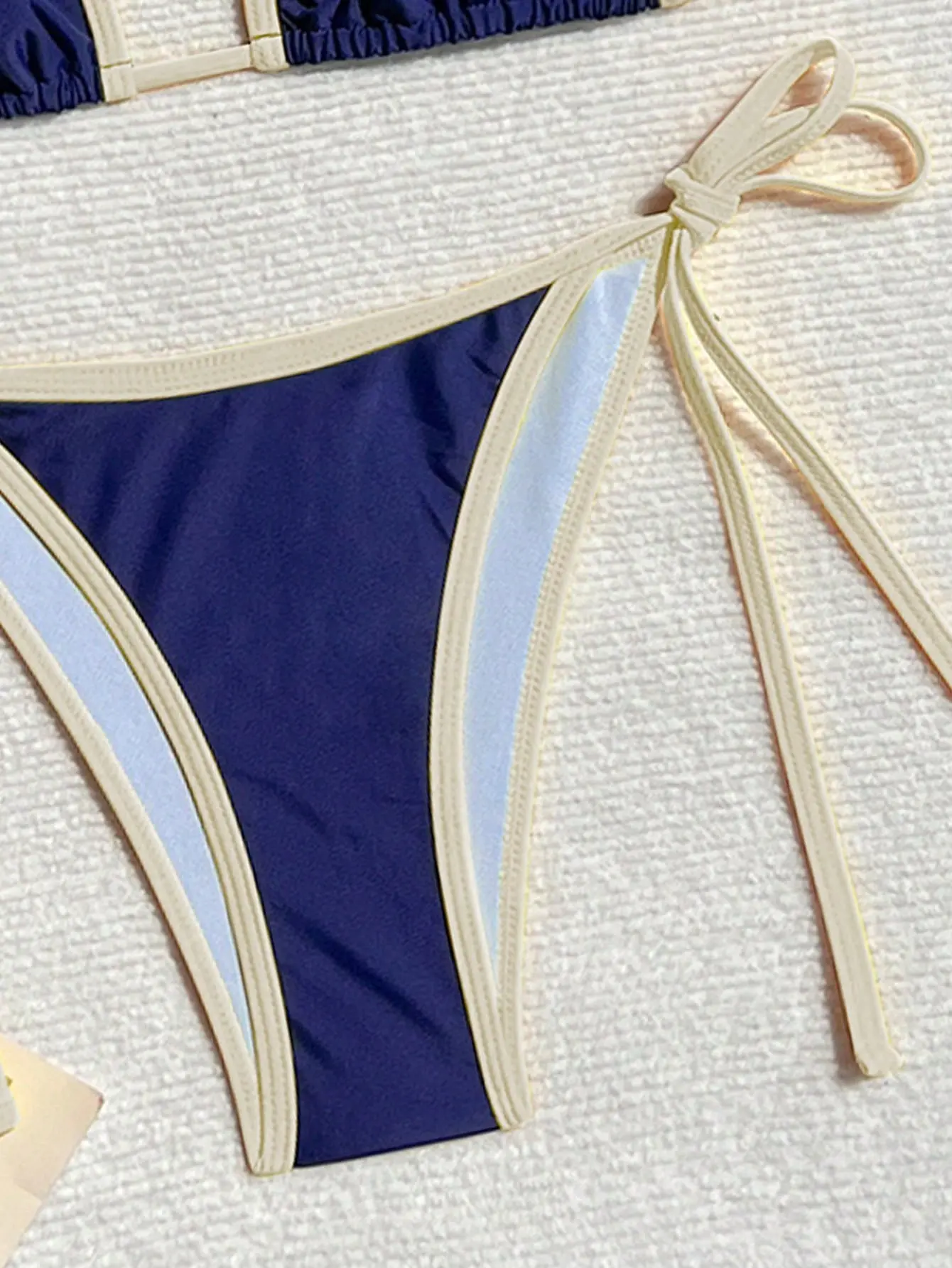 Fabric feel: slightly stretchy, silky, not see-through when dry Tie the neck and back straps to adjust the top fit