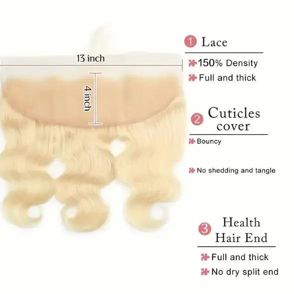 "13x4 Ear-to-Ear Body Wave 613 Blonde Lace Frontal Closure, 100% Human Hair 8-20 Inch, Natural Look & Free Parting, High Quality for Ethnic Sleek Hairstyles "