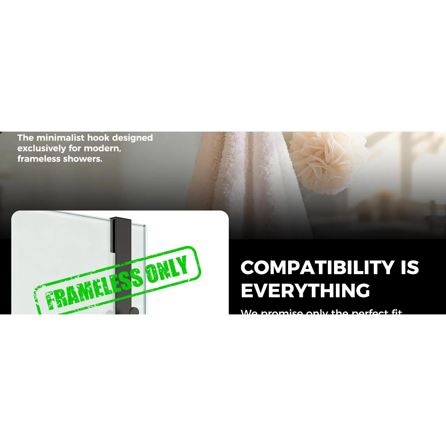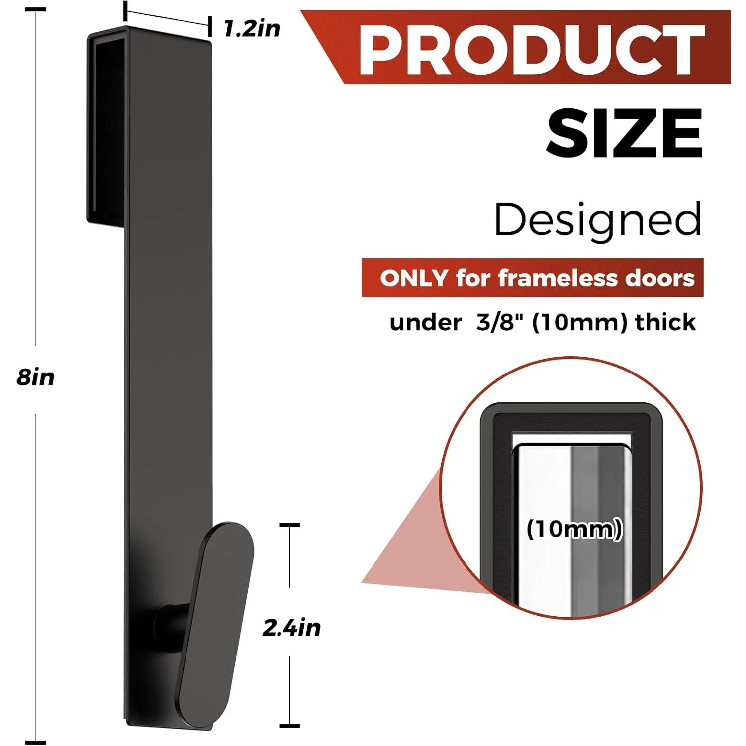 [⚠️IMPORTANT: Compatibility Check]FITS ONLY FRAMELESS Glass Shower Doors.Ensure your door has no metal/plastic frame and the glass thickness is under 3/8" (10mm).WILL NOT FIT framed doors.Taking a moment to confirm ensures it works perfectly for you[Built For Bathrooms]Crafted from premium stainless steel,this bathroom door hook boasts a rust-proof body that thrives in humid bathrooms.Its sturdy build delivers dependable performance year after year,holding your items securely[Easy To Install]Achieve a no-drill,tool-free setup in seconds.Simply place it over the shower door-no adhesives,screws,or damage.It is the fastest way to add a towel holder for glass shower door or organize loofahs and robes effortlessly[No Slip & Scratch-Free]Features soft inner padding that grips tightly to prevent slipping,scratches,and noise.The glass shower towel hook stays securely in place,holding towels firmly without marking or damaging your glass[Simplify Shower Storage]Use your shower door to get organized.Perfect for holding all your shower stuff like towels,loofahs and robes,keeping everything neatly stored and always accessible
