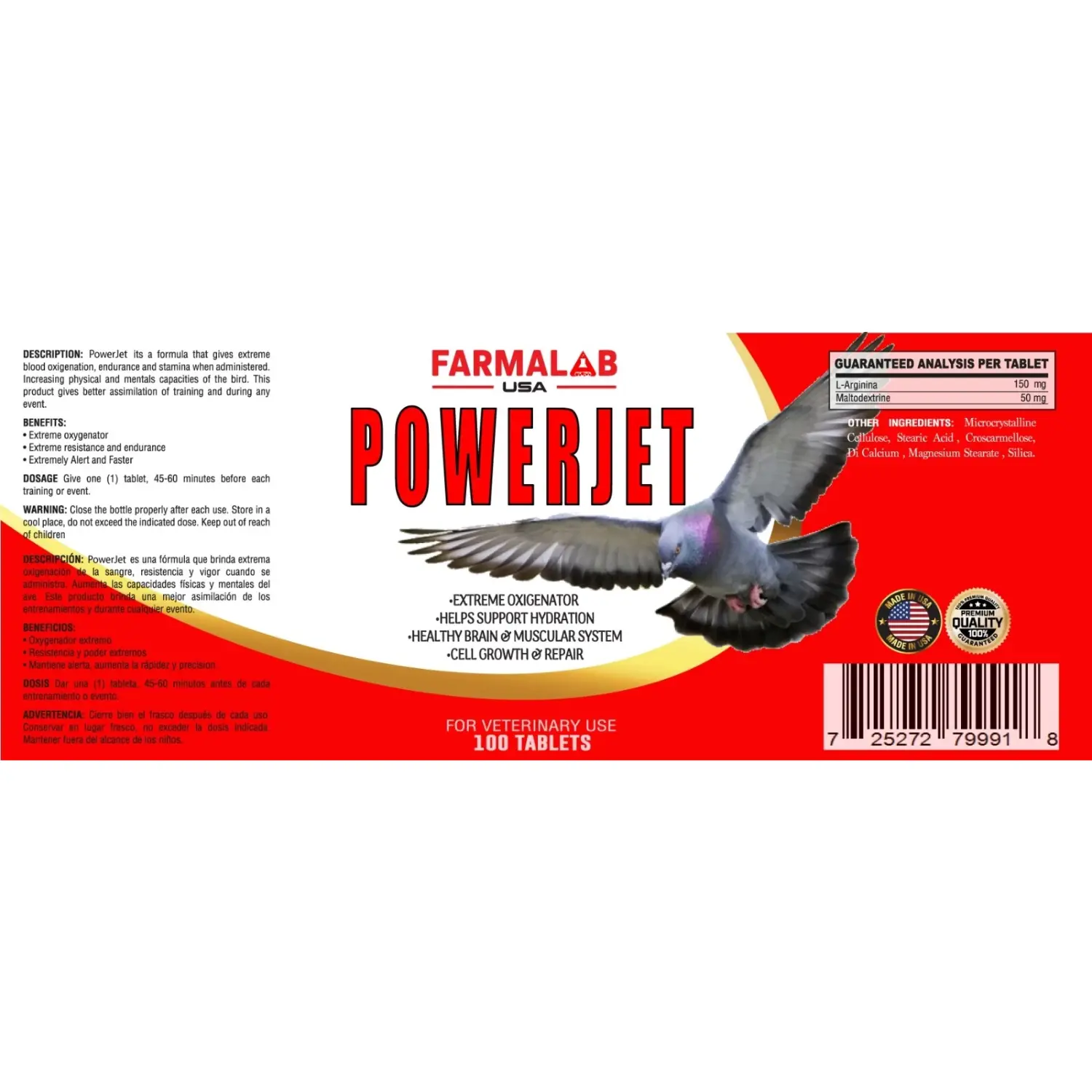 ·FORMULA COMPOSITION: Each tablet contains 150mg L-Arginine and 50mg Maltodextrine, designed specifically for racing pigeons' performance needs
