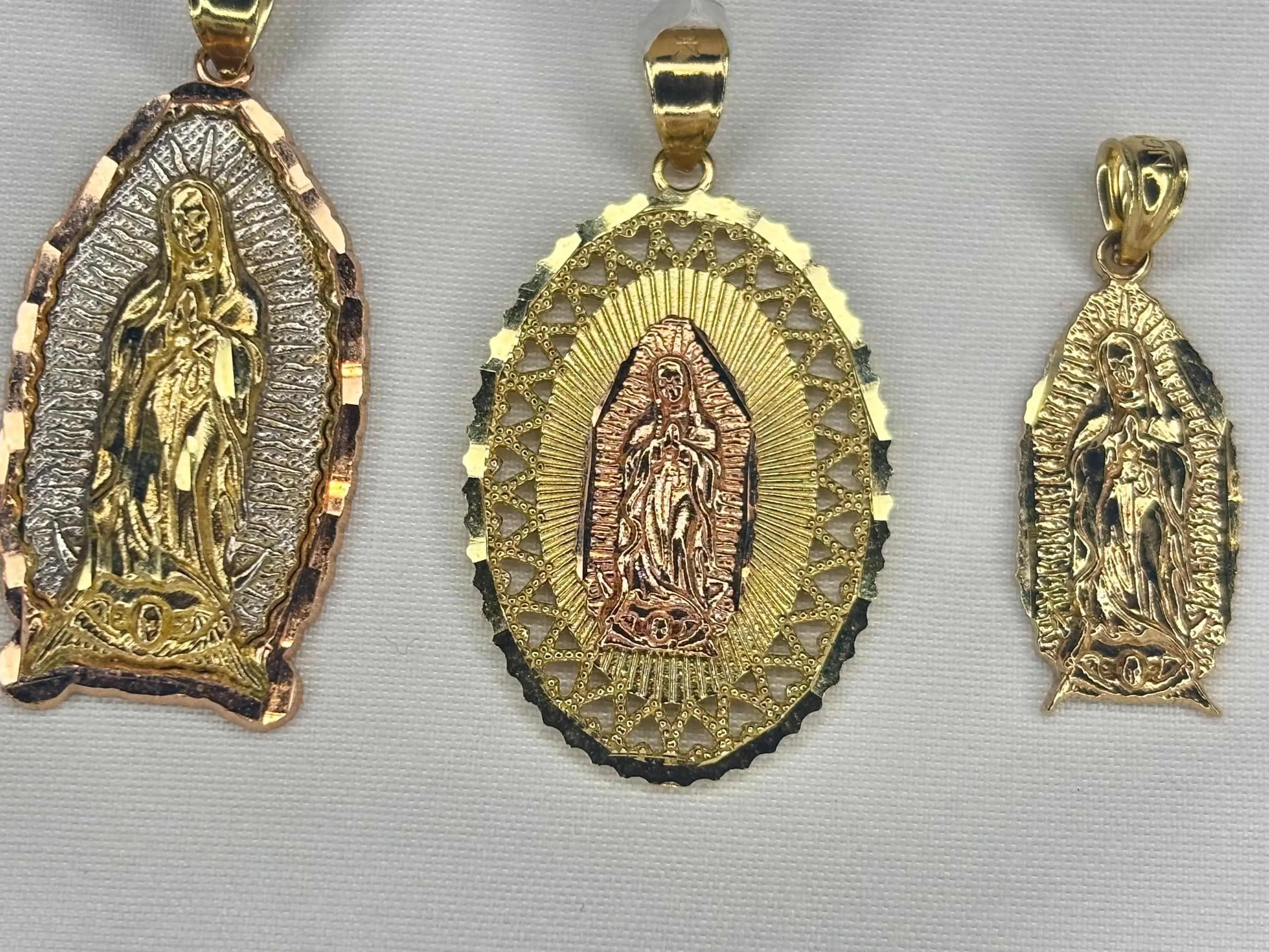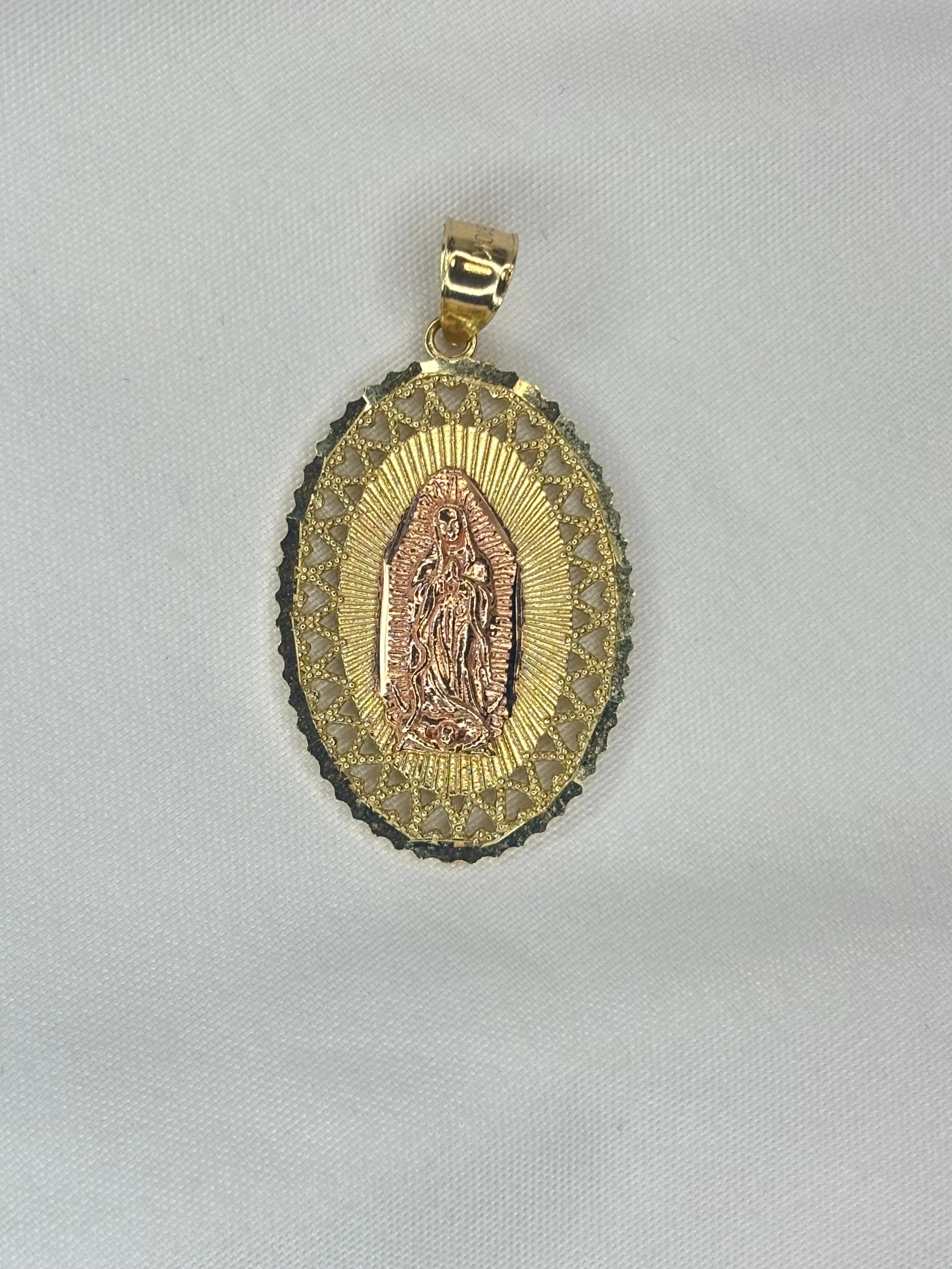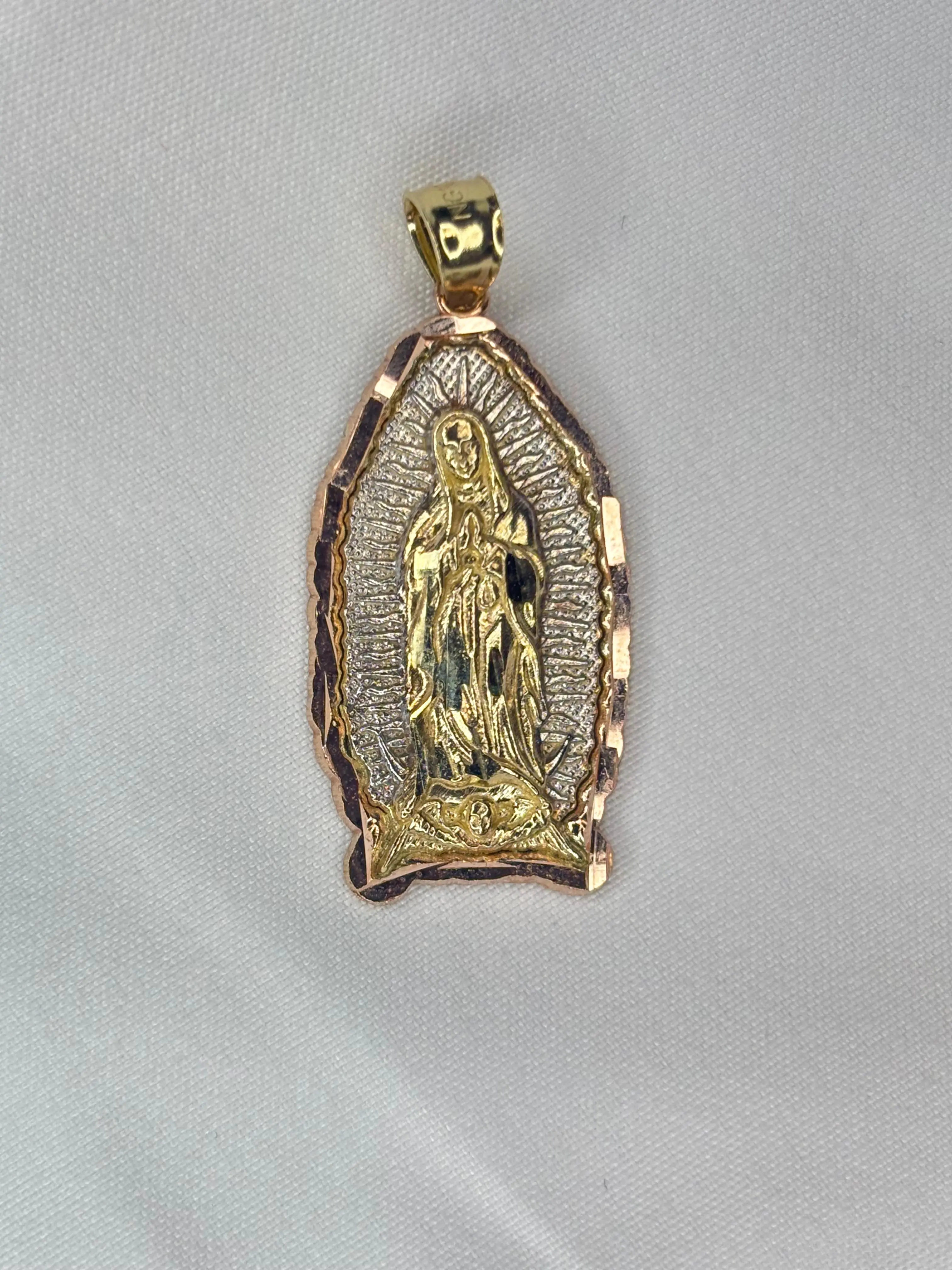 ·Elegante dije de la Virgen de Guadalupe en oro real 10k: This exquisite piece is a tribute to the revered Virgin of Guadalupe. Crafted in real 10k gold, it offers a timeless elegance. Perfect for those who appreciate spiritual symbolism in their jewelry.