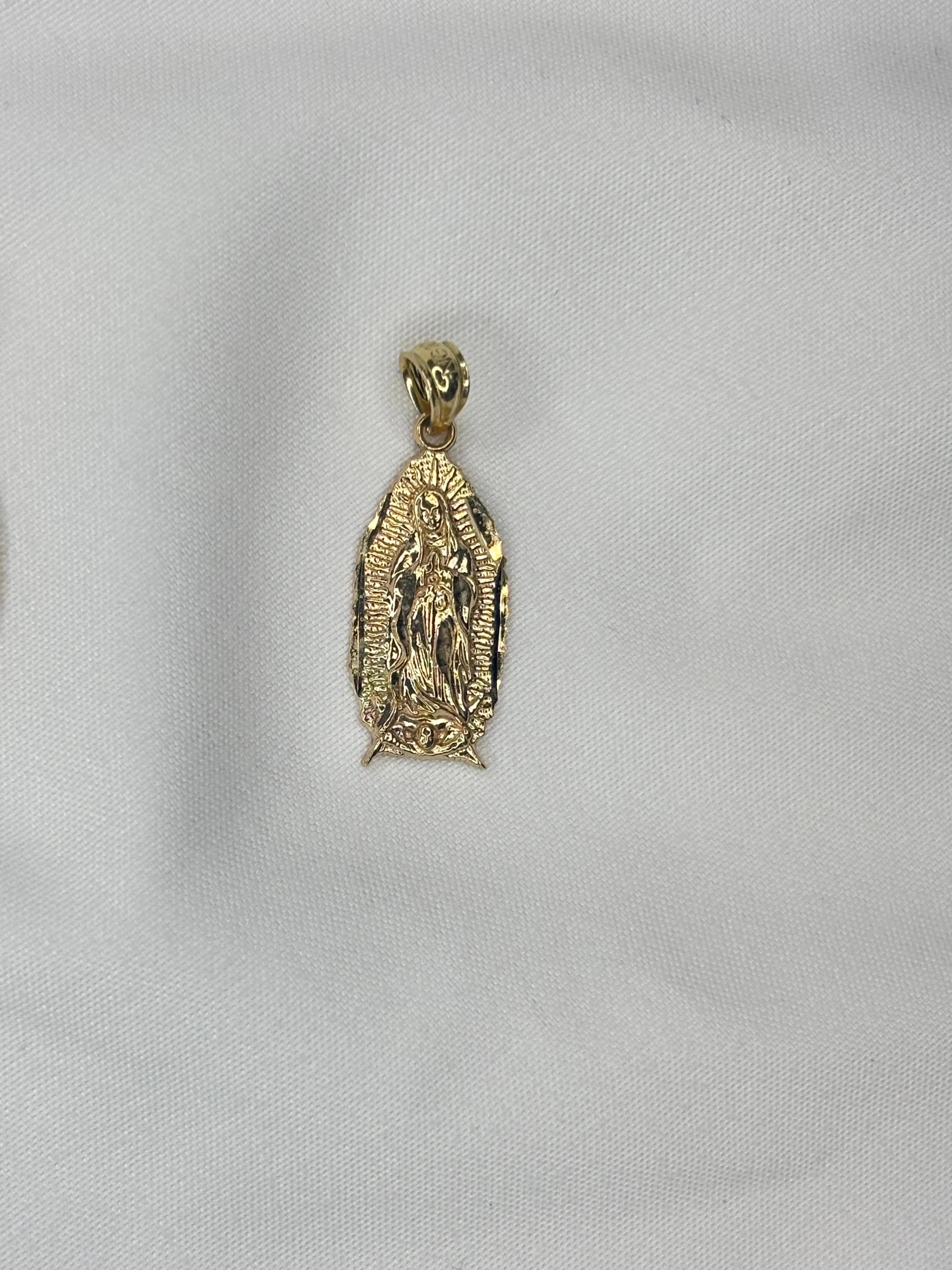 ·The dije is a delicate yet meaningful accessory. It features the iconic image of the Virgin of Guadalupe, rendered in 10k gold. This piece is ideal for personal adornment or as a thoughtful gift. The gold's luster adds a touch of sophistication to any outfit.