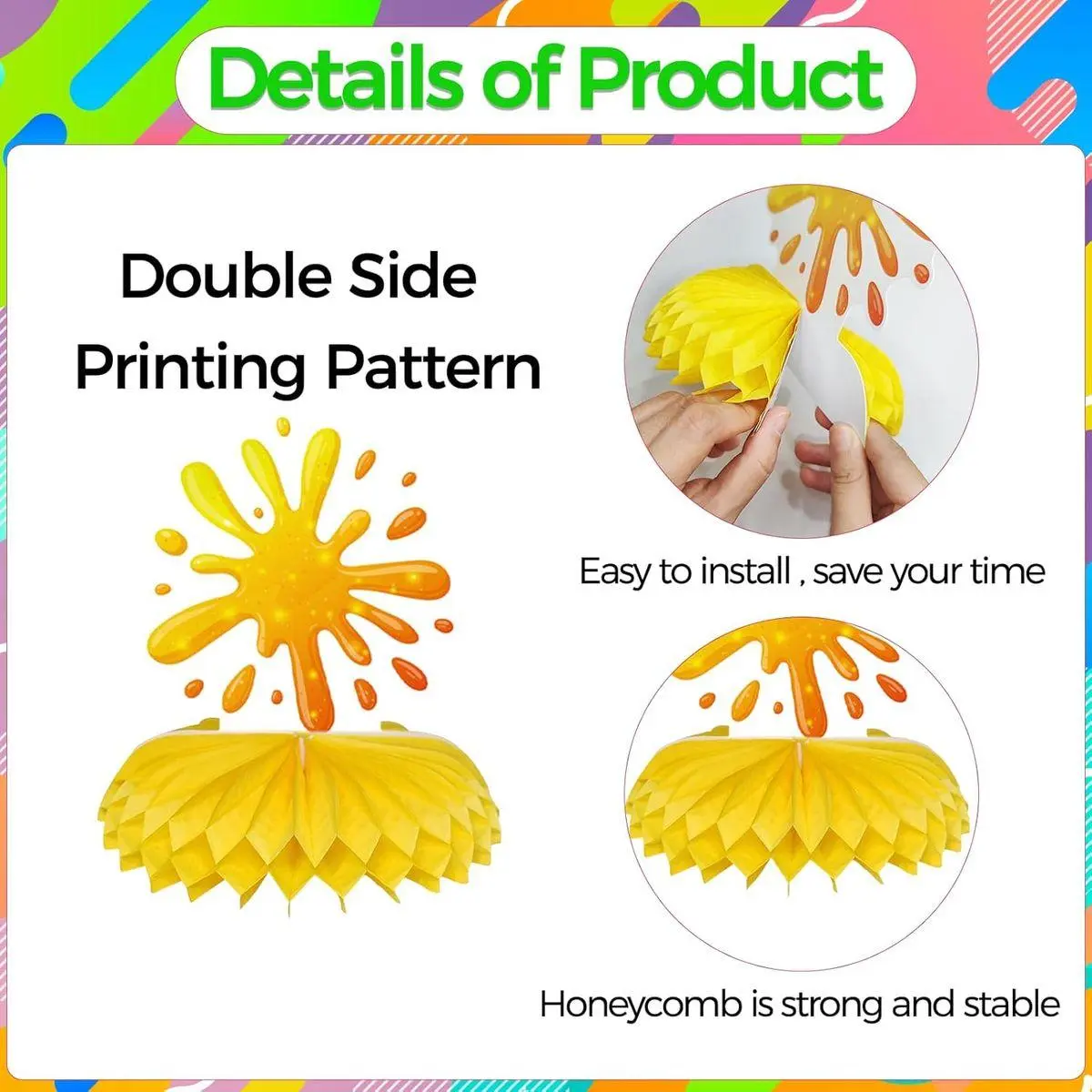 Easy Assembly: Simply unfold and expand the honeycomb pieces to create a stunning 3D display.