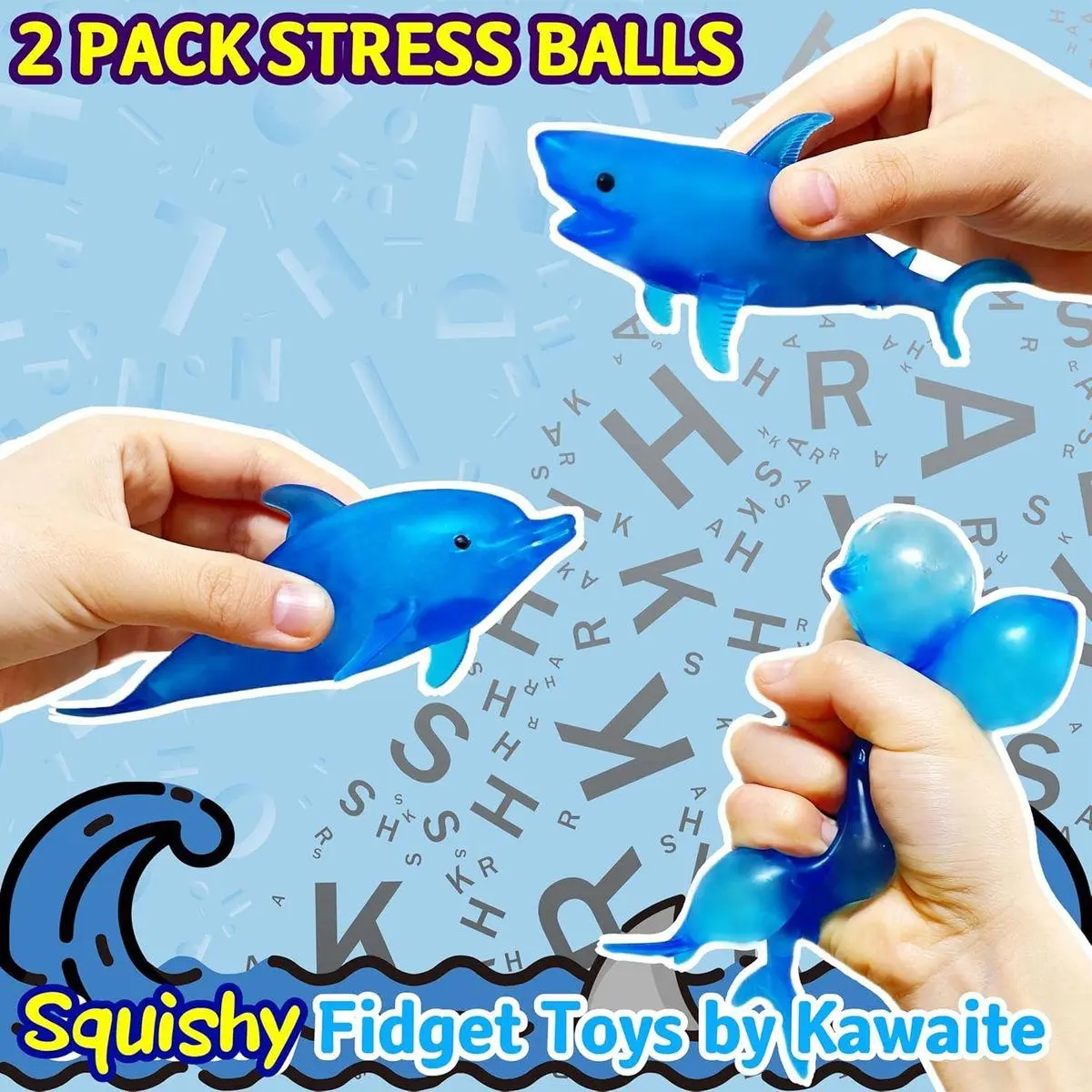 2 Pack Squishy Shark & Dolphin Stress Balls - Fun squishy stress ball, great for Vase Fillers and Party Favors. Easy to use, you can squeeze easily and have fun, adults can squeeze it to relieve stress at work. Two great stress ball squishy shark and dolphin!