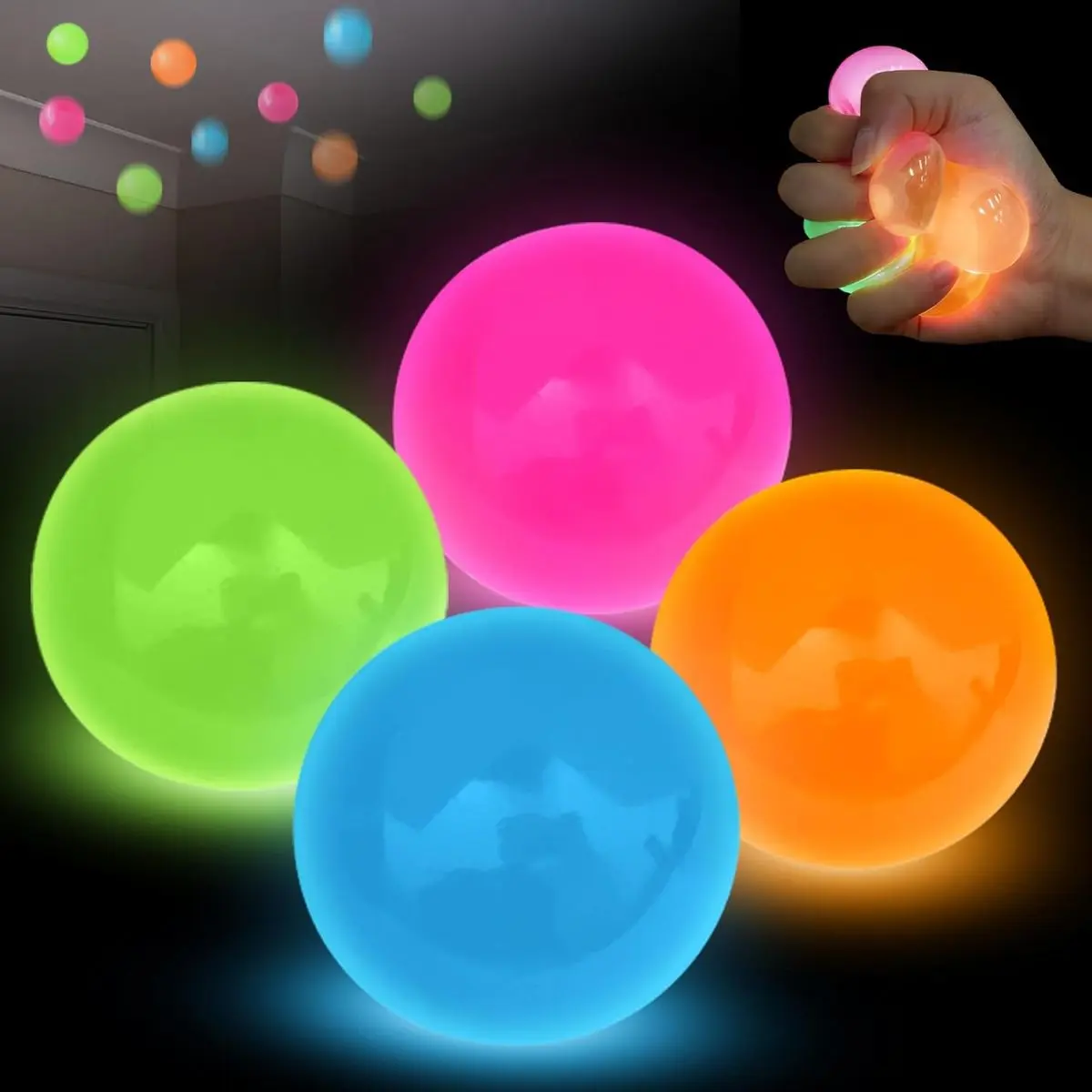 How to Play Glow Balls: these sticky balls on a clean and flat surface, stress balls such as walls, ceilings, desktops, tiles, etc., wait for the balls to fall slowly, and then catch them, sensory ball which can help you relax; Attention: The ball must be clean or washed thoroughly to avoid dirtying your walls, as each wall is different. If you are afraid of dirtying the wall, do not throw it on the wall.The interactive playstyle makes these glow balls charming valentines gifts for him her women stress relief, and their easy design works well as valentines stocking stuffers for busy days.