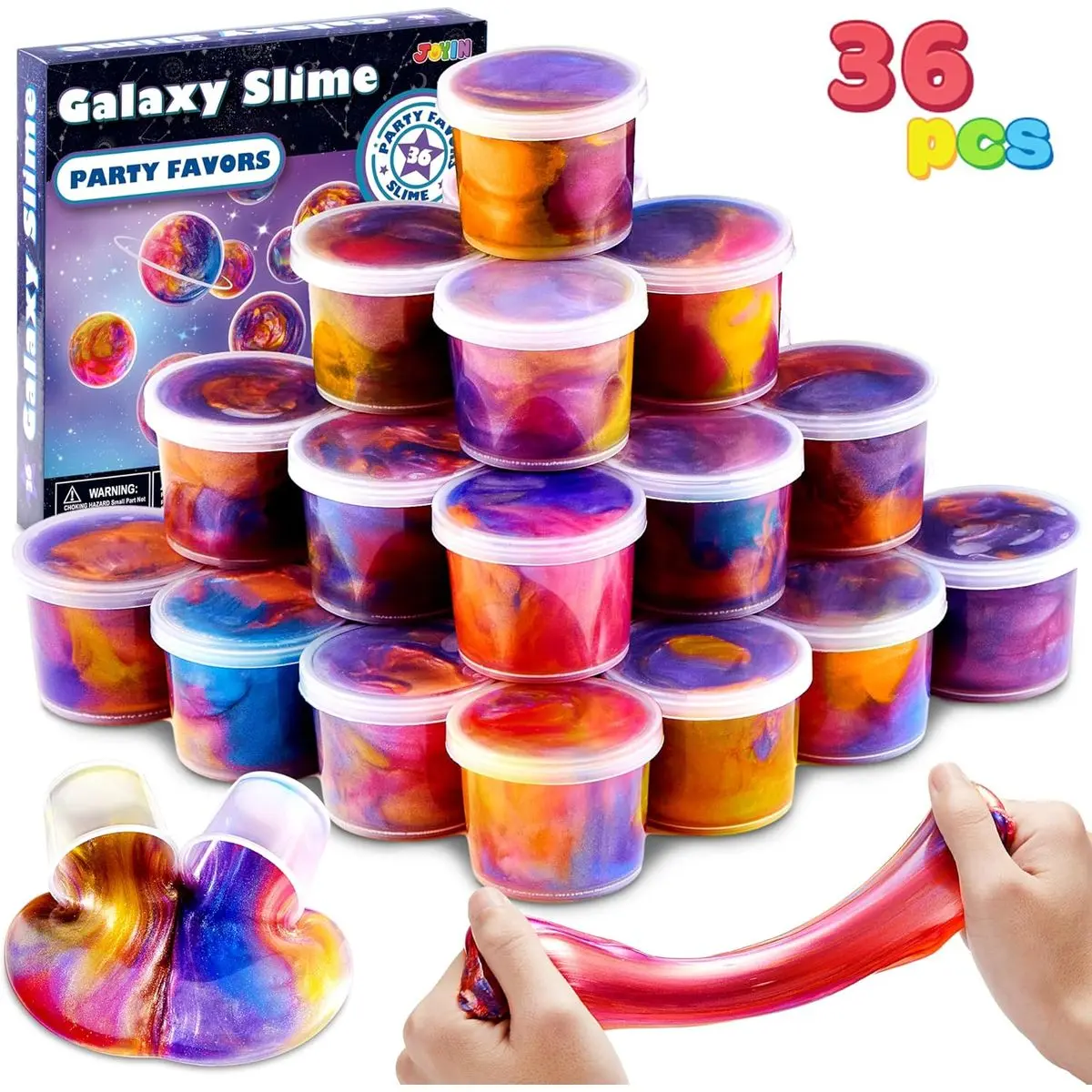 PERFECT FOR ANY PARTY: Whether it's a birthday, graduation, valentines, easter, halloween, Christmas or any other special occasion, our galaxy slime party favors are a must-have for any party and can be used as treasure box toys for the classroom, kids party favor gifts, goodie bags stuffers, easter stuffers, pinata fillers, end of year student gifts, back-to-school gifts, etc