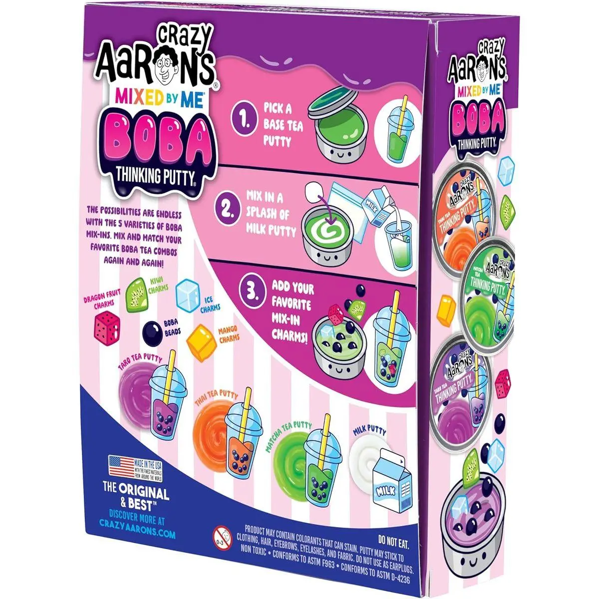Make 3 unique Boba Thinking Putties with fruit charms, boba beads, and "milk" putty