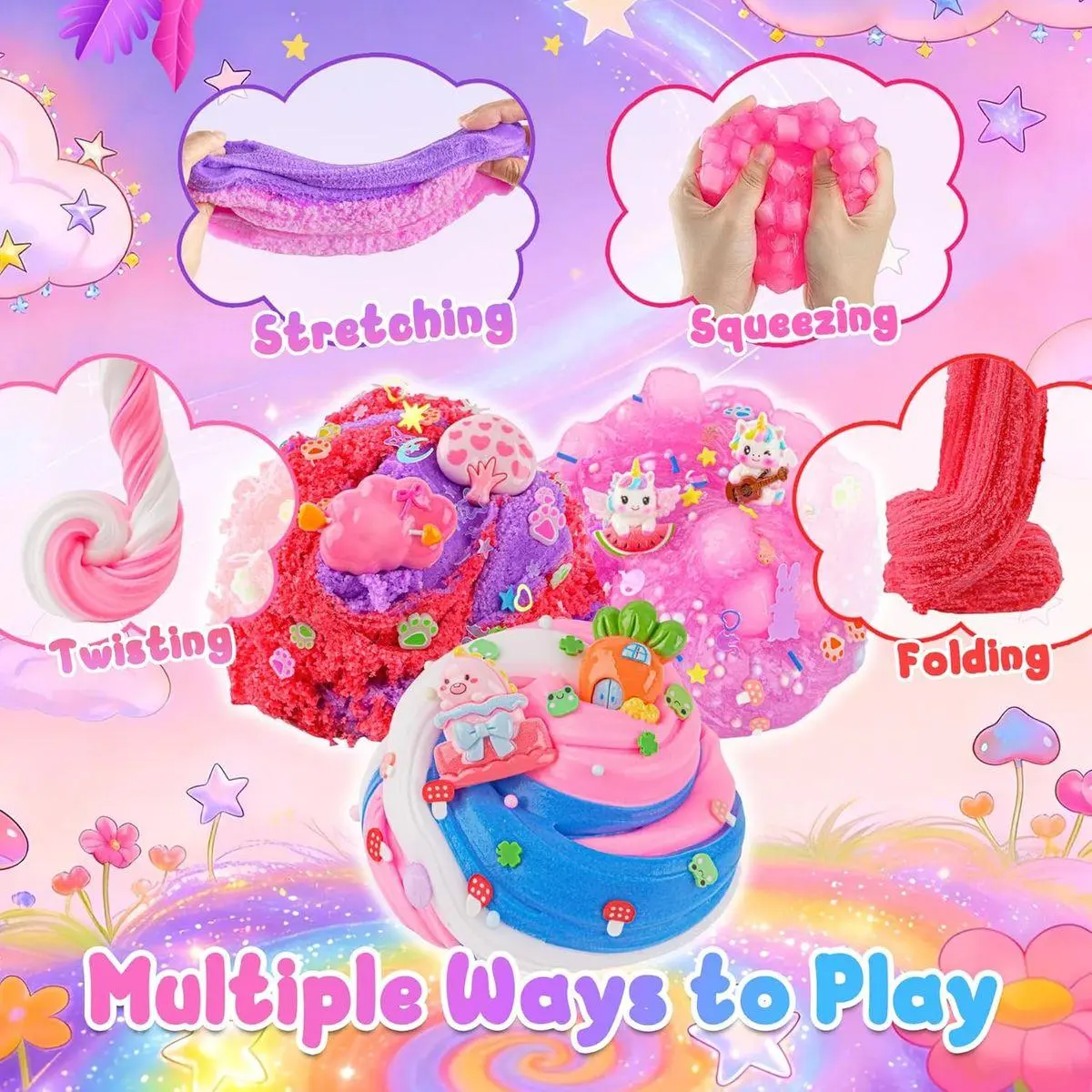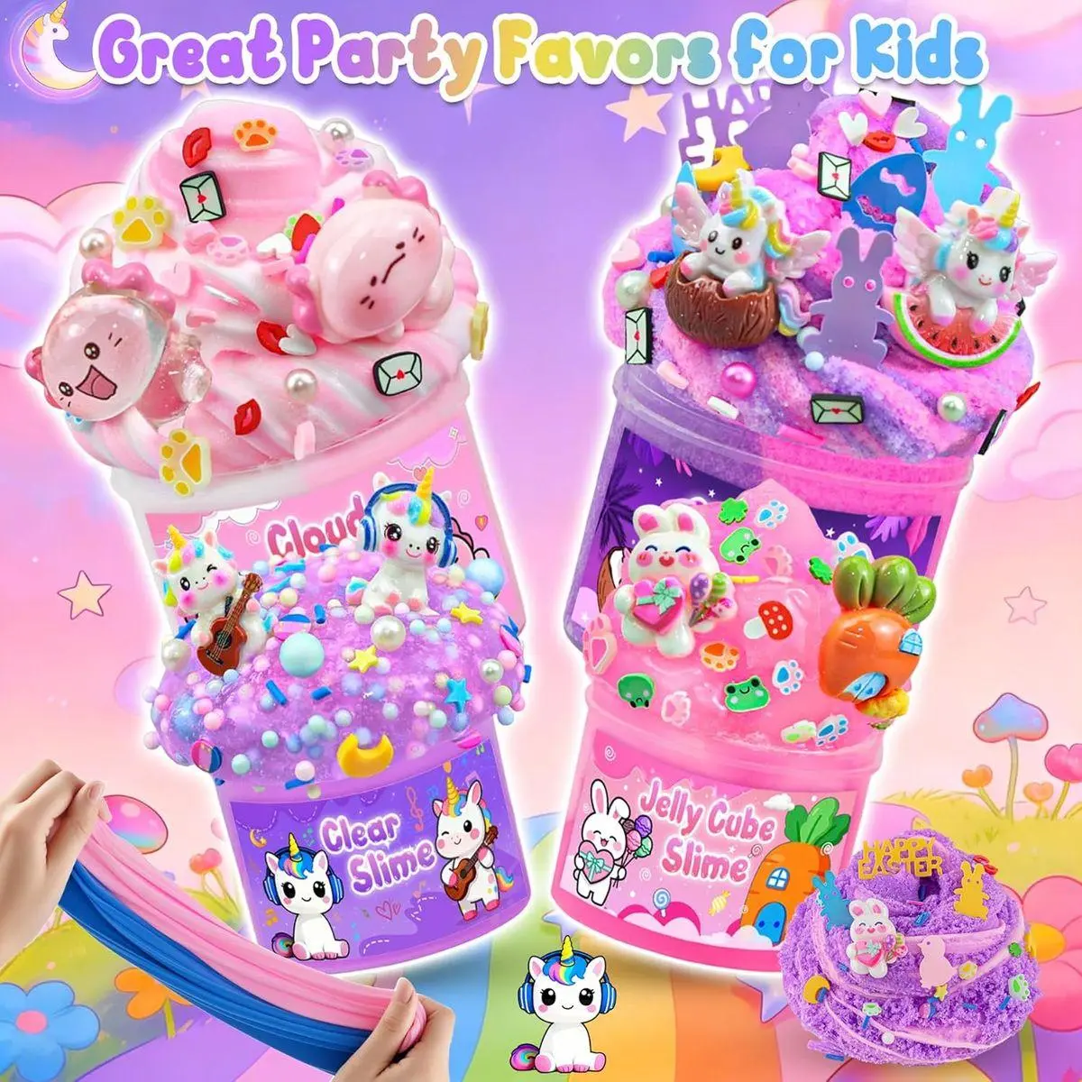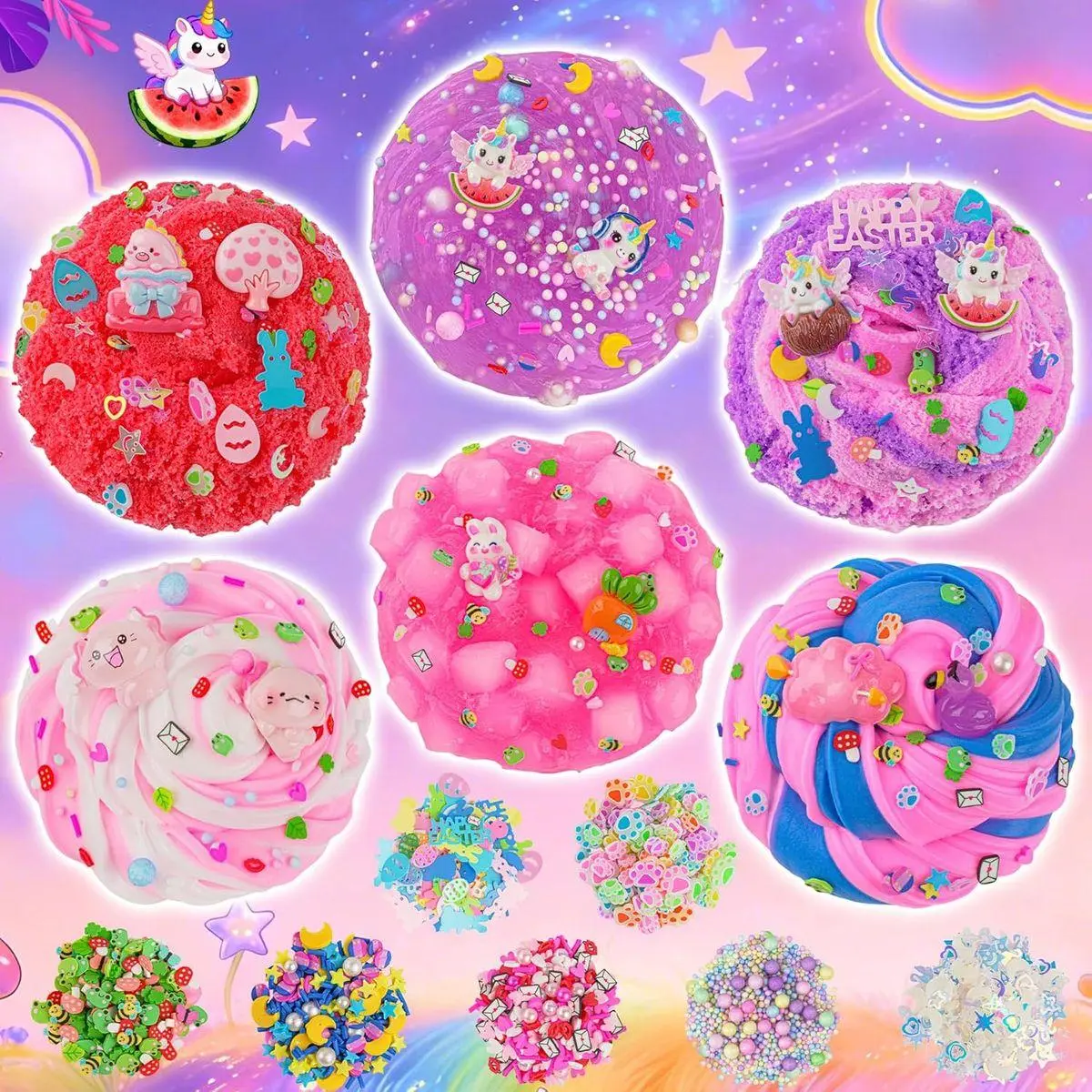 【6 Packs Pink Slime Kit】Our all-in-one slime kit includes everything a young slime creator needs: 2 packs of premium butter slime and 2 packs cloud slime, a variety of cute unicorn and bunny charms. Perfect for ages 8-12, it inspires endless creativity and storytelling as kids customize their own magical slime worlds