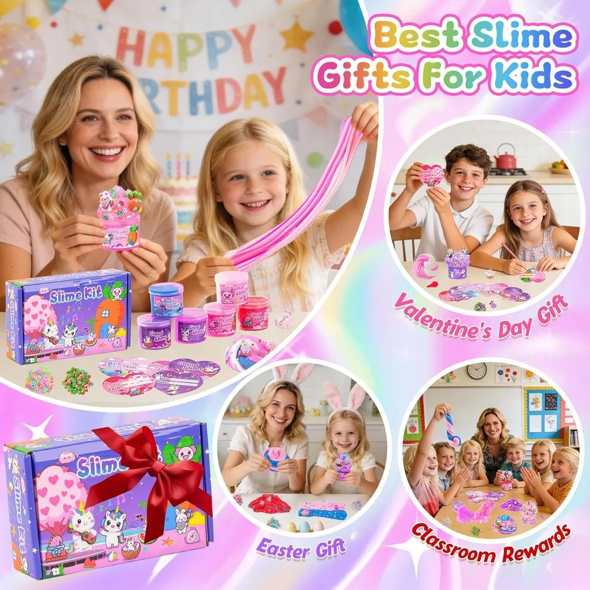 【The Ultimate Party Favor & Holiday Gift】Perfect goodie bag stuffer and stress relief toy. This 6 pack pink slime is ideal for birthday party favors, Easter basket fillers, Valentine's Day gifts, or classroom prizes. Give a gift that combines trendy fun with sensory benefits, making any occasion special