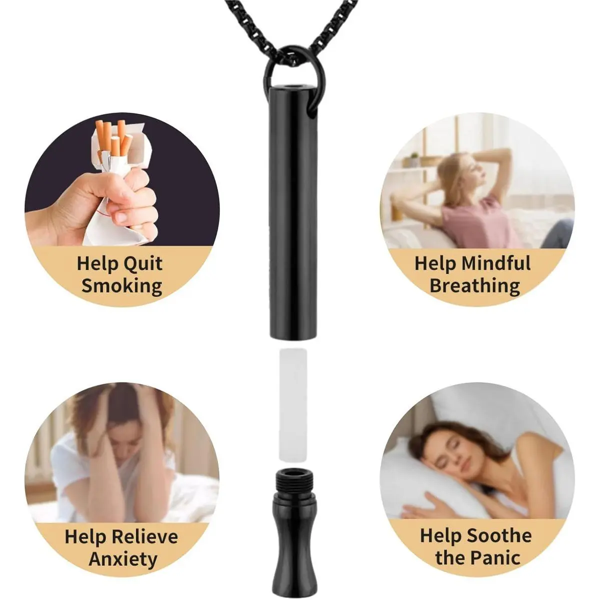 Portable & Comfortable: Our product fits easily in pockets and purses. Take it to home, office, travel to curb sudden cravings. The air puffer for habit support design offers smooth and fresh air which is harmless. The chain and pendant are made of 304 stainless steel for safe and comfortable wear