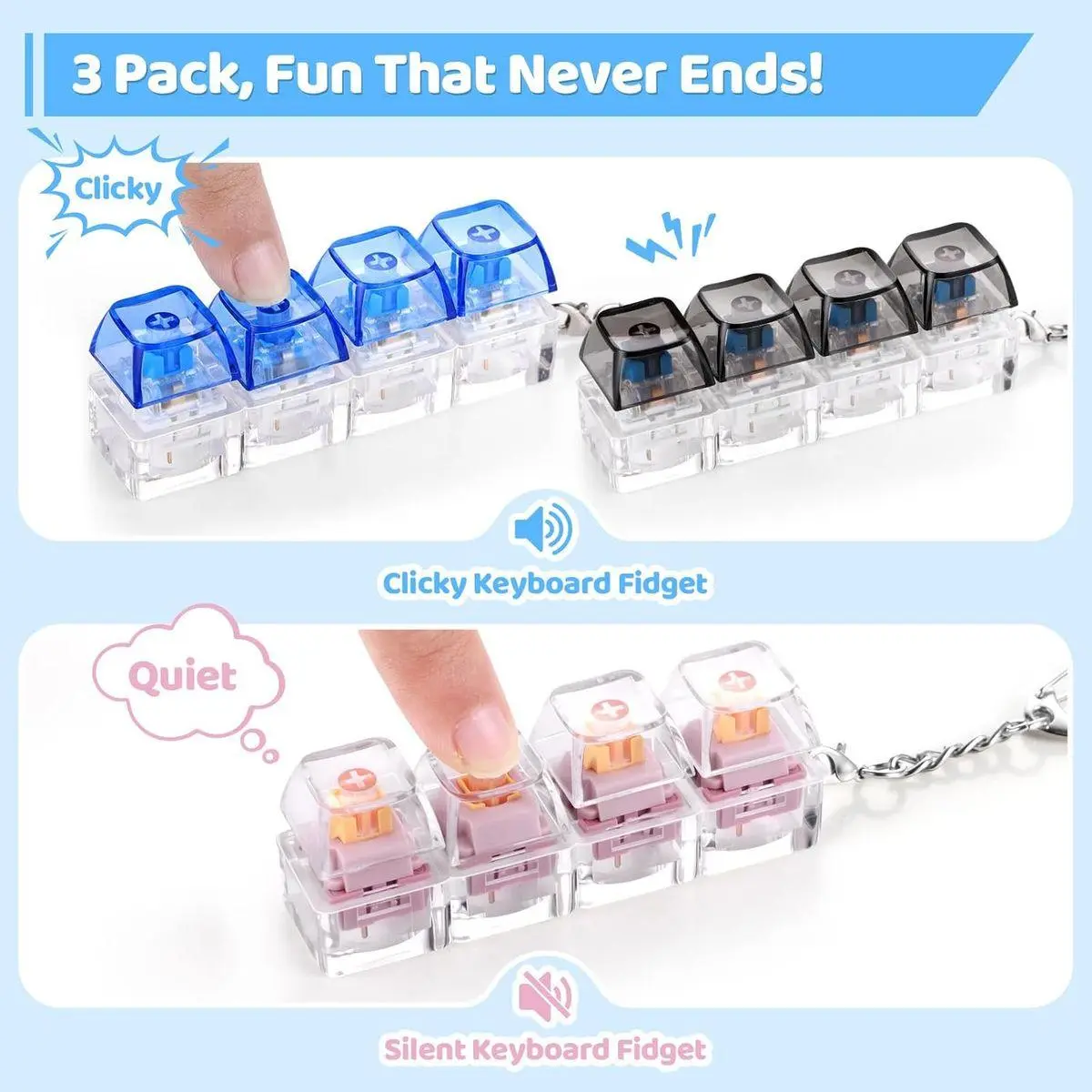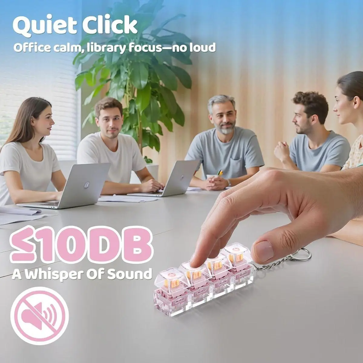 【3 Sound Options for Stress Relief】Enjoy smooth “creamy,” crisp “clicky,” and true “silent” sounds. Switch between different key tones to calm anxiety during work, boost focus in meetings, or enjoy fidgeting without distraction