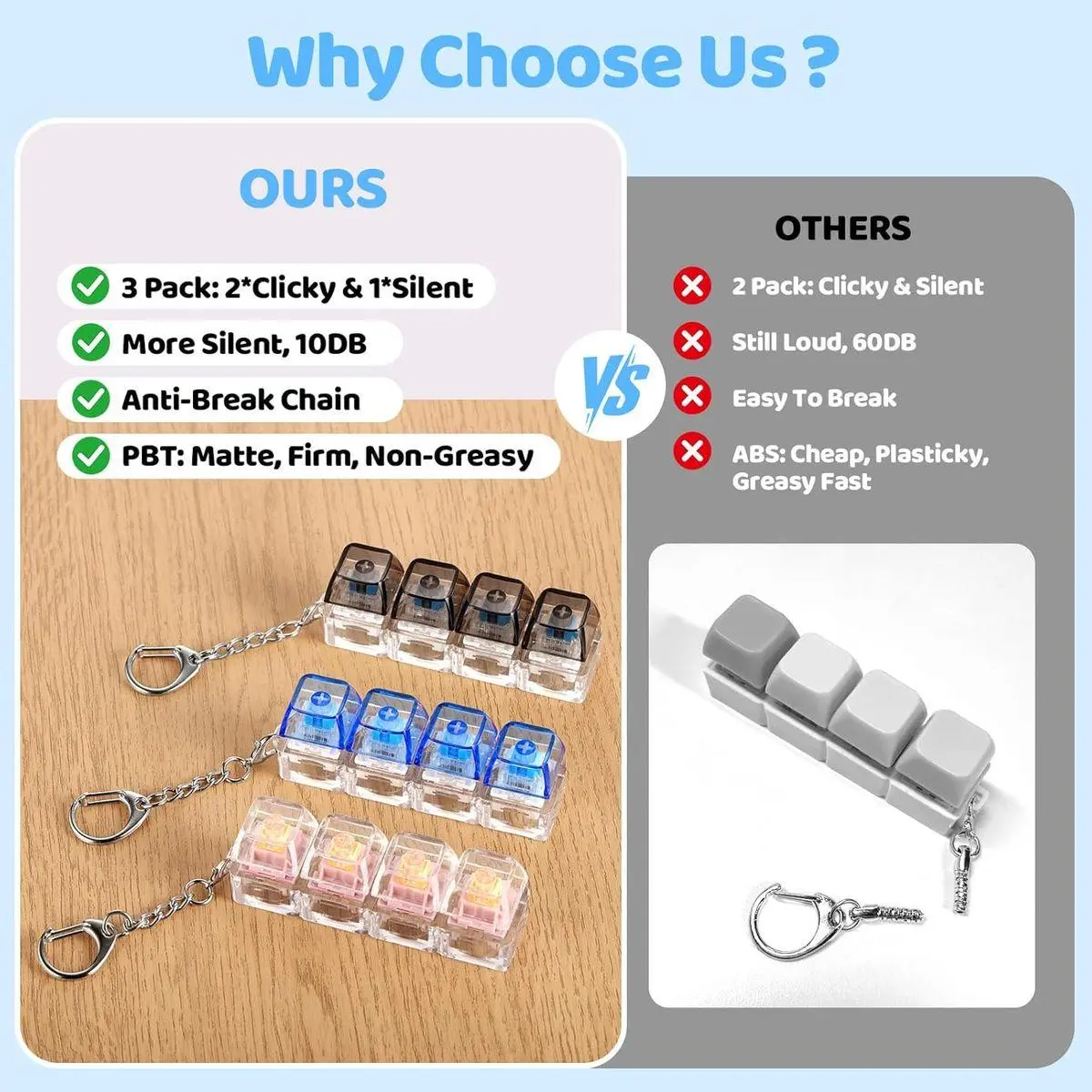 【Built to Last & Endlessly Fun】Crafted with premium PBT keycaps and a reinforced chain that resists breakage, it won’t wear out even after daily use. Removable keycaps and switches let you customize and combine freely for endless fingertip fun and long-lasting comfort