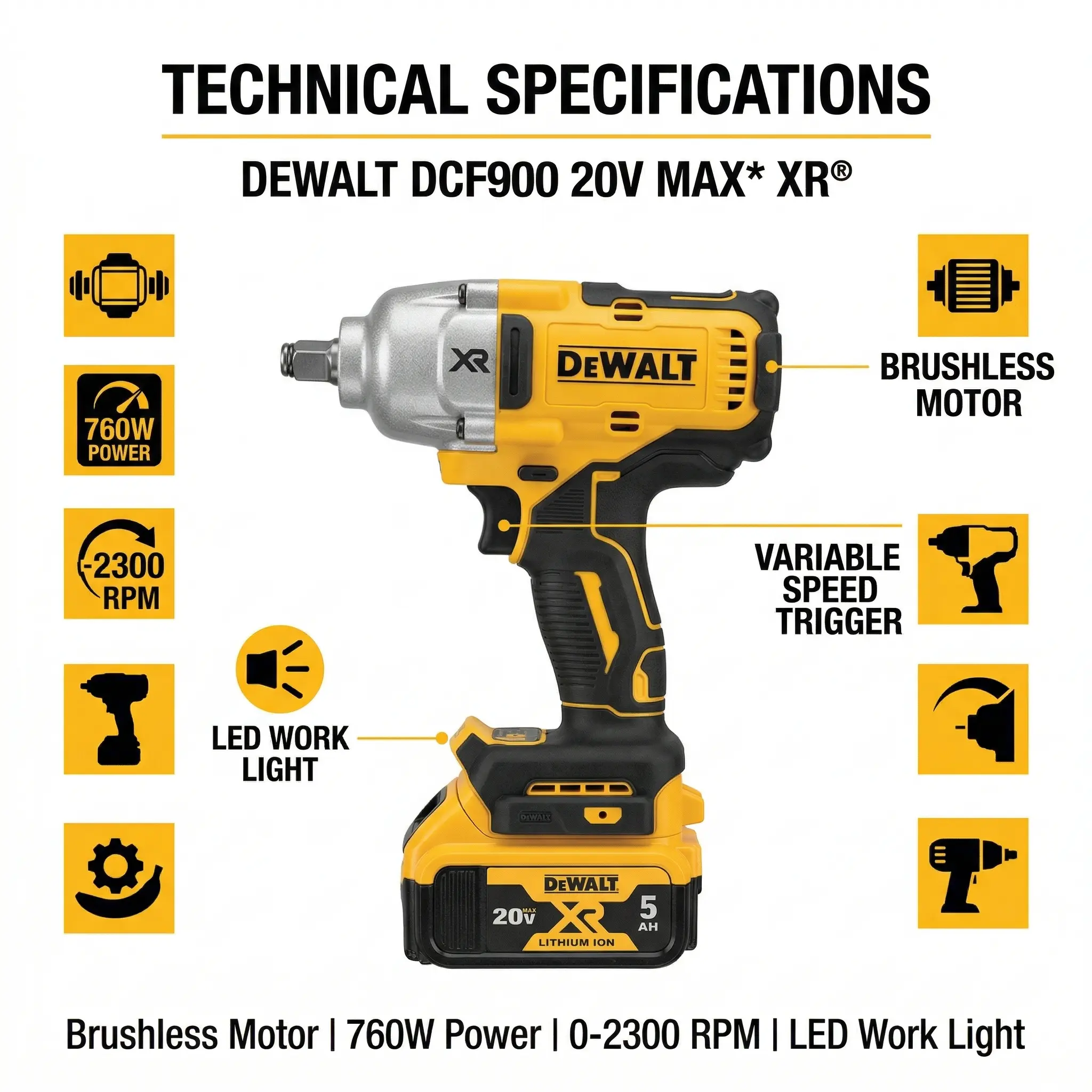 DEWALT DCF900 18V Brushless Impact Wrench for Truck And Machinery Service torque multiplier
