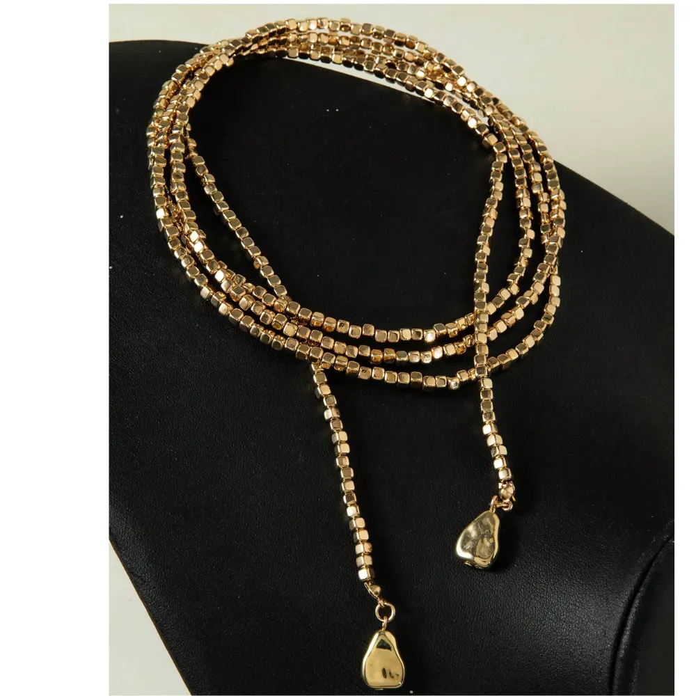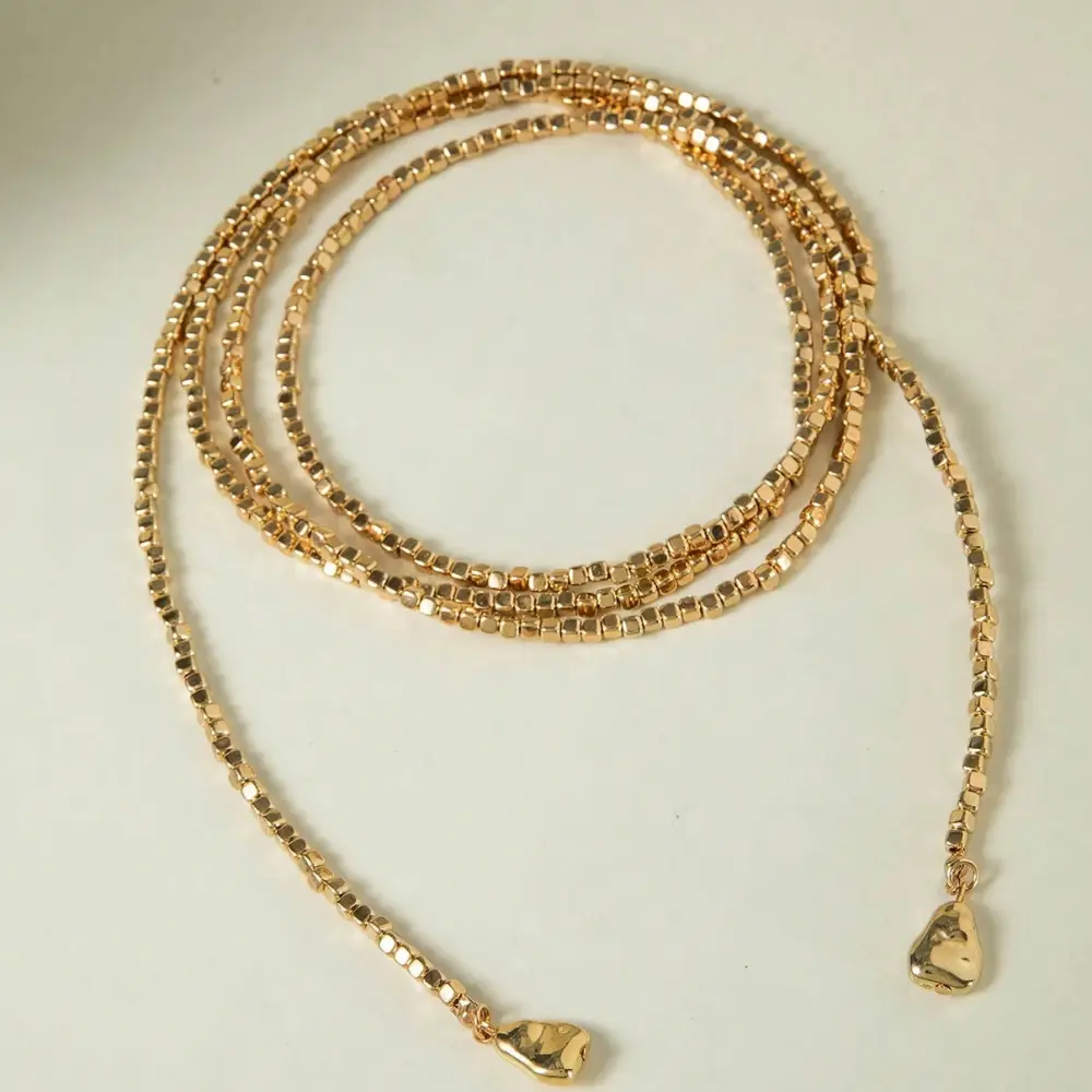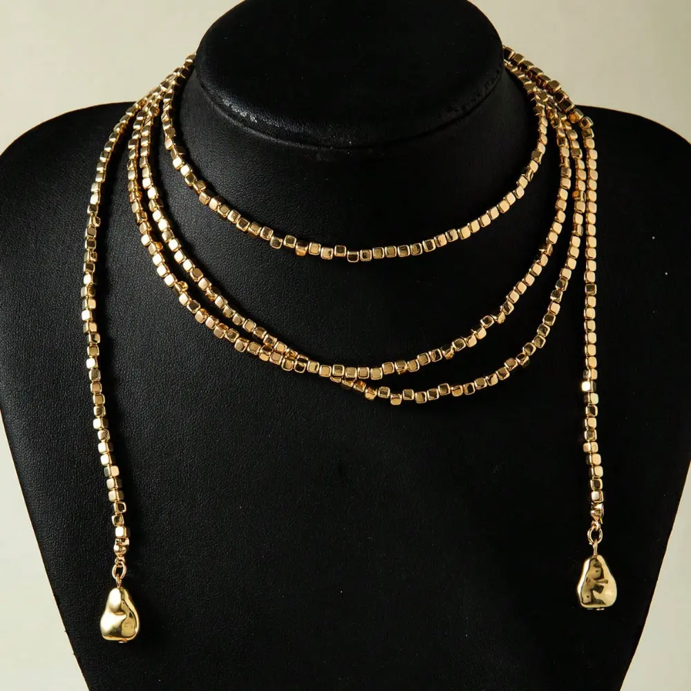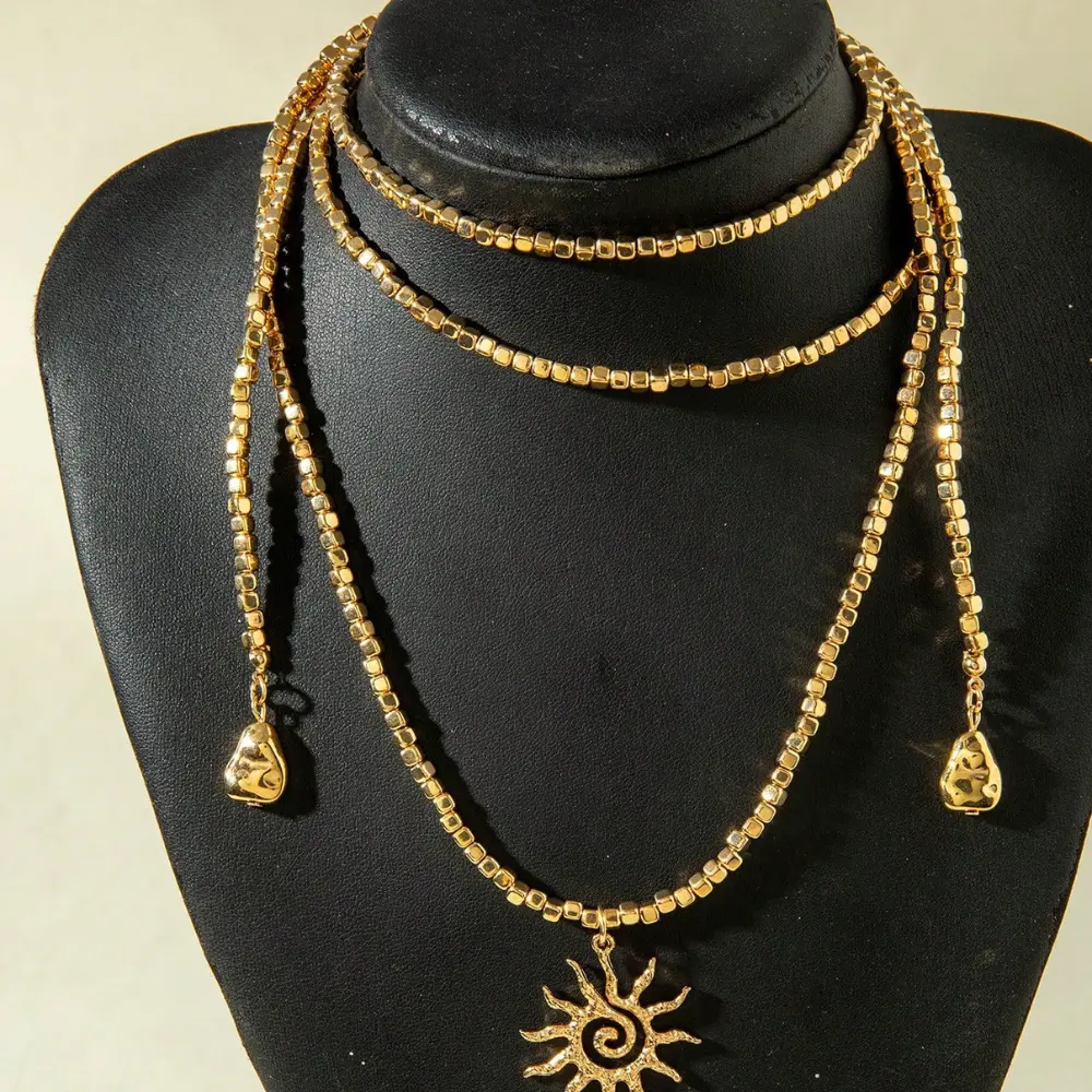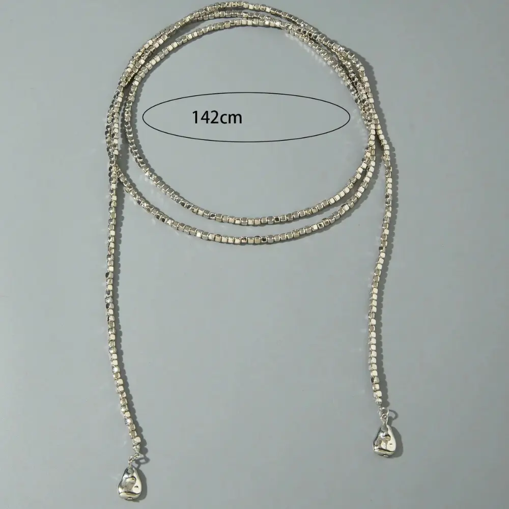 This long necklace can be wrapped into a bracelet or layered in multiple ways to suit your style. Featuring a bold heart-shaped pendant, it blends a sweet romantic touch with a modern edge thanks to its geometric bead chain. Perfect for work, casual outings, or light parties, it adds a versatile and stylish finish to any look.