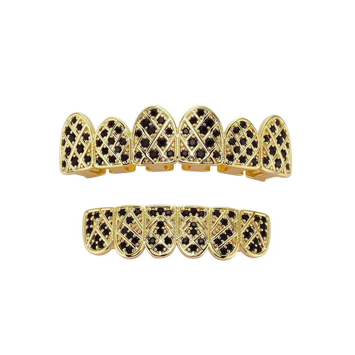 2PCS Set Halloween Gold Plated Iced Out Tooth Grillz VVS Moissanite Top Bottom Hip Hop Rapper Mouth Jewelry Streetwear Costume Trendy Gift