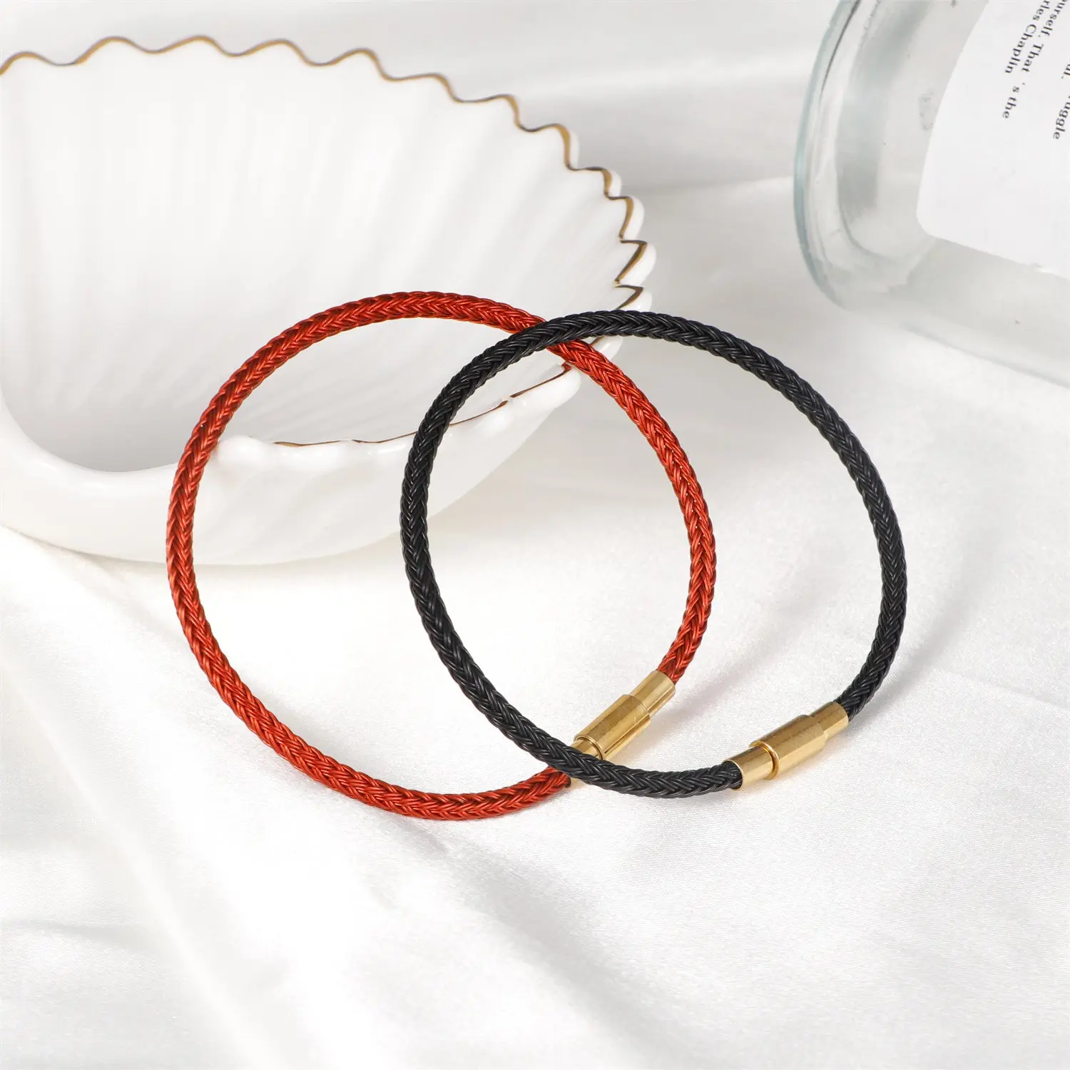 In traditional Chinese culture, wearing a red string is a powerful ward against negative energy, especially crucial during one's Ben Ming Nian (Zodiac Birth Year). Red represents the fire element, symbolizing vitality, joy, and profound luck. By upgrading the classic red cotton thread into a durable woven steel wire, this bracelet preserves ancient blessings while adapting to the relentless pace of contemporary life.