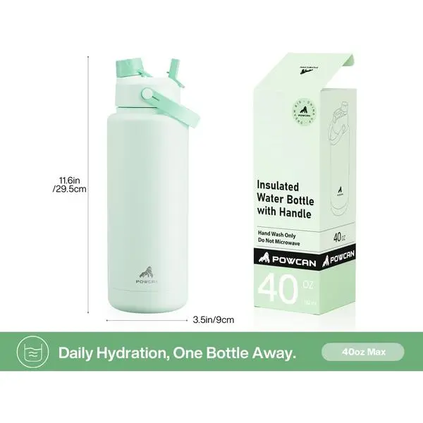 📏 Generous Capacity: With a 40 oz capacity, this bottle provides ample hydration for an entire day. Ideal for sports, travel, or everyday use. Note: It does not fit in standard car cup holders.
