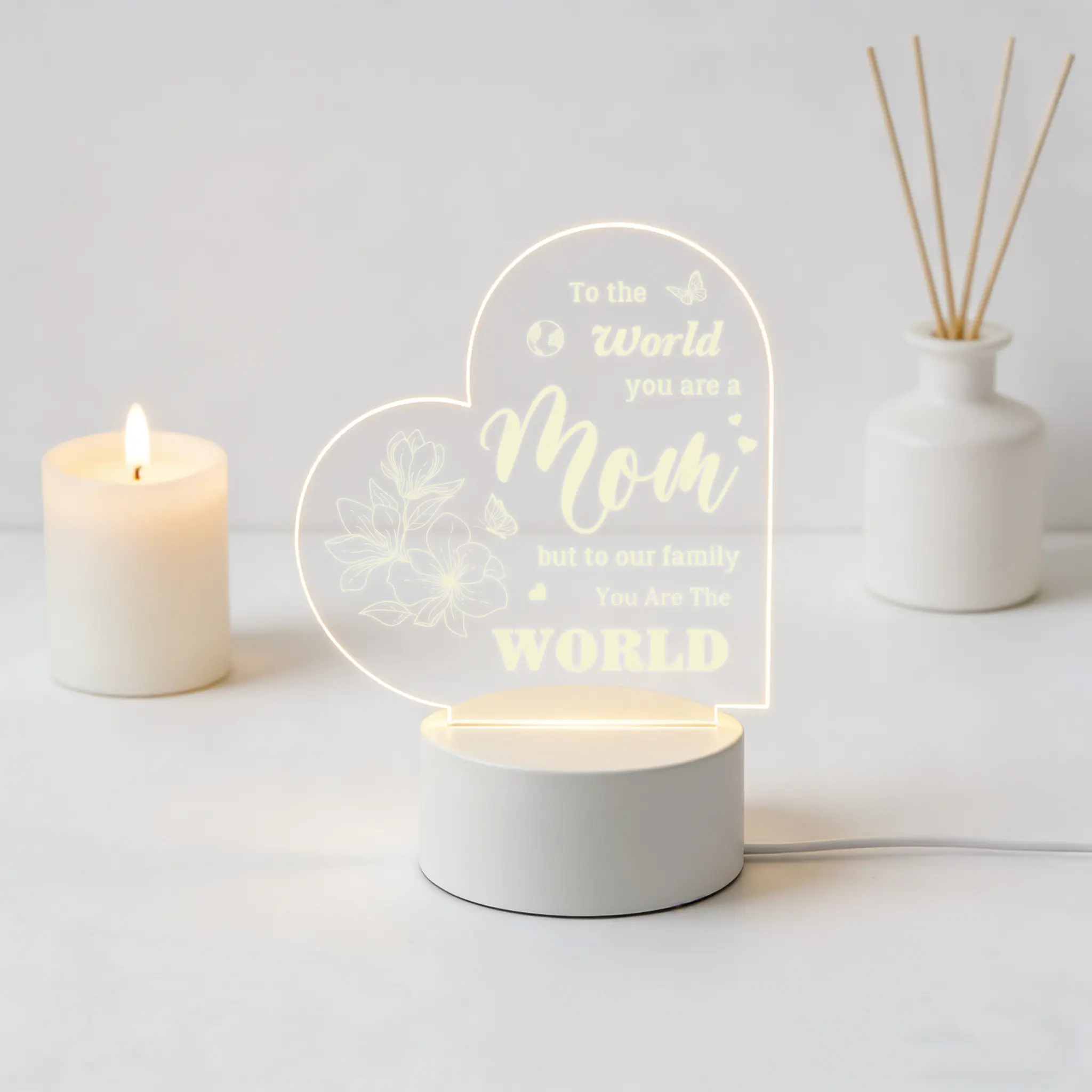 ✨ To The World You Are A Mom Heart 2D Acrylic LED Night Light ✨