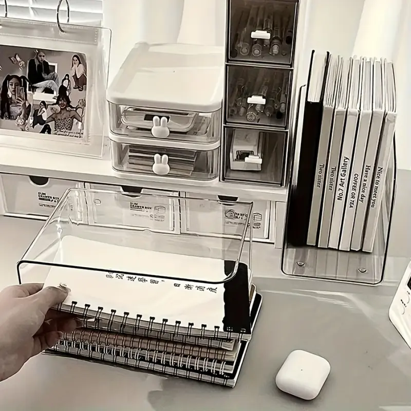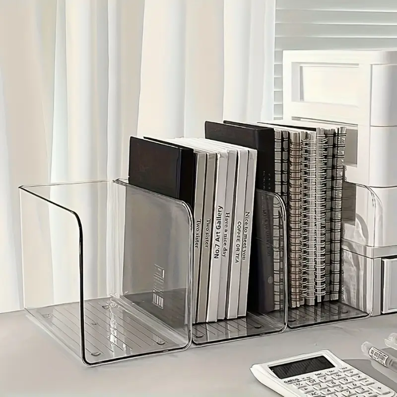 5. 1PC/2PCS Invisible Transparent Acrylic Bookends, Non-marking Desktop Book Baffle, Minimalist Transparent Space-saving Design, Anti-slip Partition Organizer Universal for Students Office Books and File Storage