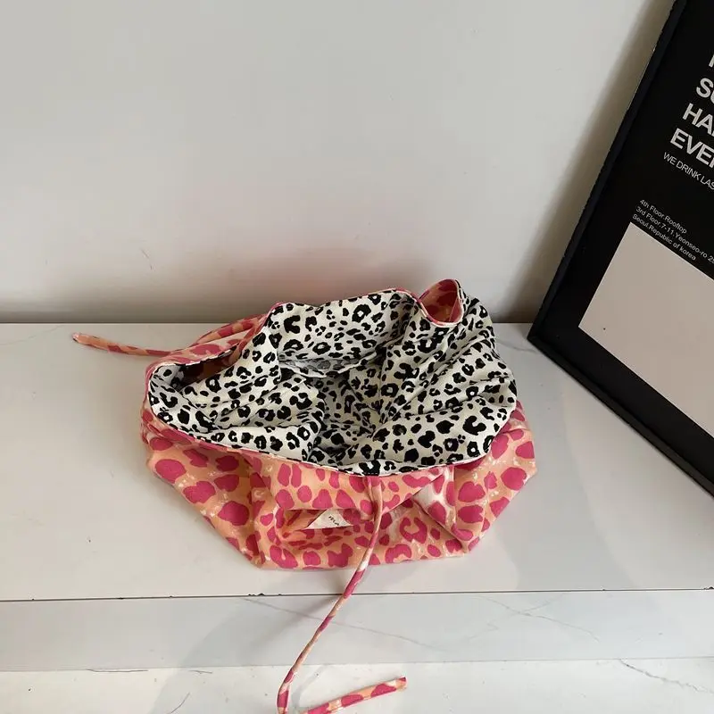 Korean Double Sided Leopard Print Hobo Bag , Stylish Leopard Print Handbag for Women, Fashion Bow Large Capacity Shoulder Bag