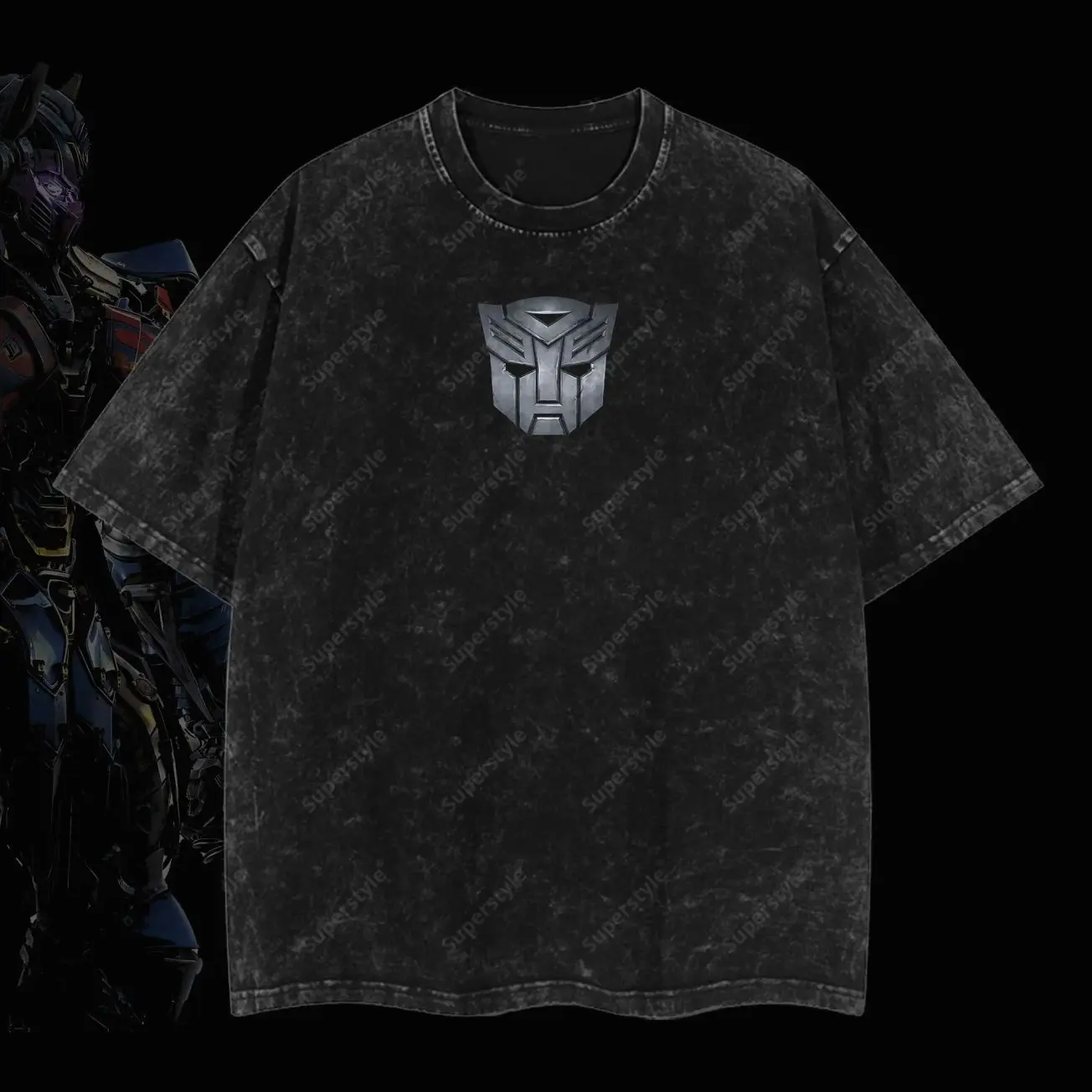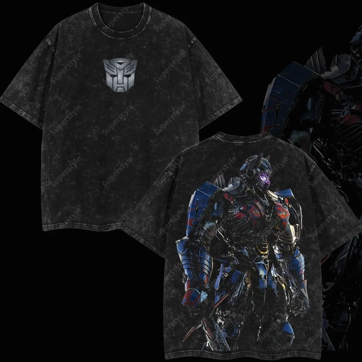 Superstyle The last Knight Orion Pax Transform Dark of the Moon Edition Double Printed Oversize Lightweight Acid Washed Tee TV Series Graphic Design Top Cotton Streetwear Film Movies T-Shirt Clothes Menswear Womenswear ZWH