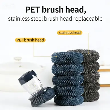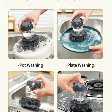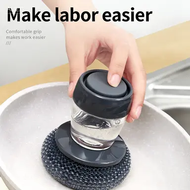 ✅Built-in Liquid Dispenser: No more messy soap bottles!The pre-loaded soap reservoir automatically releases cleaning solution as you scrub, ensuring every stroke is powerful and efficient.Perfect for tough stains on pots, pans, and grills.