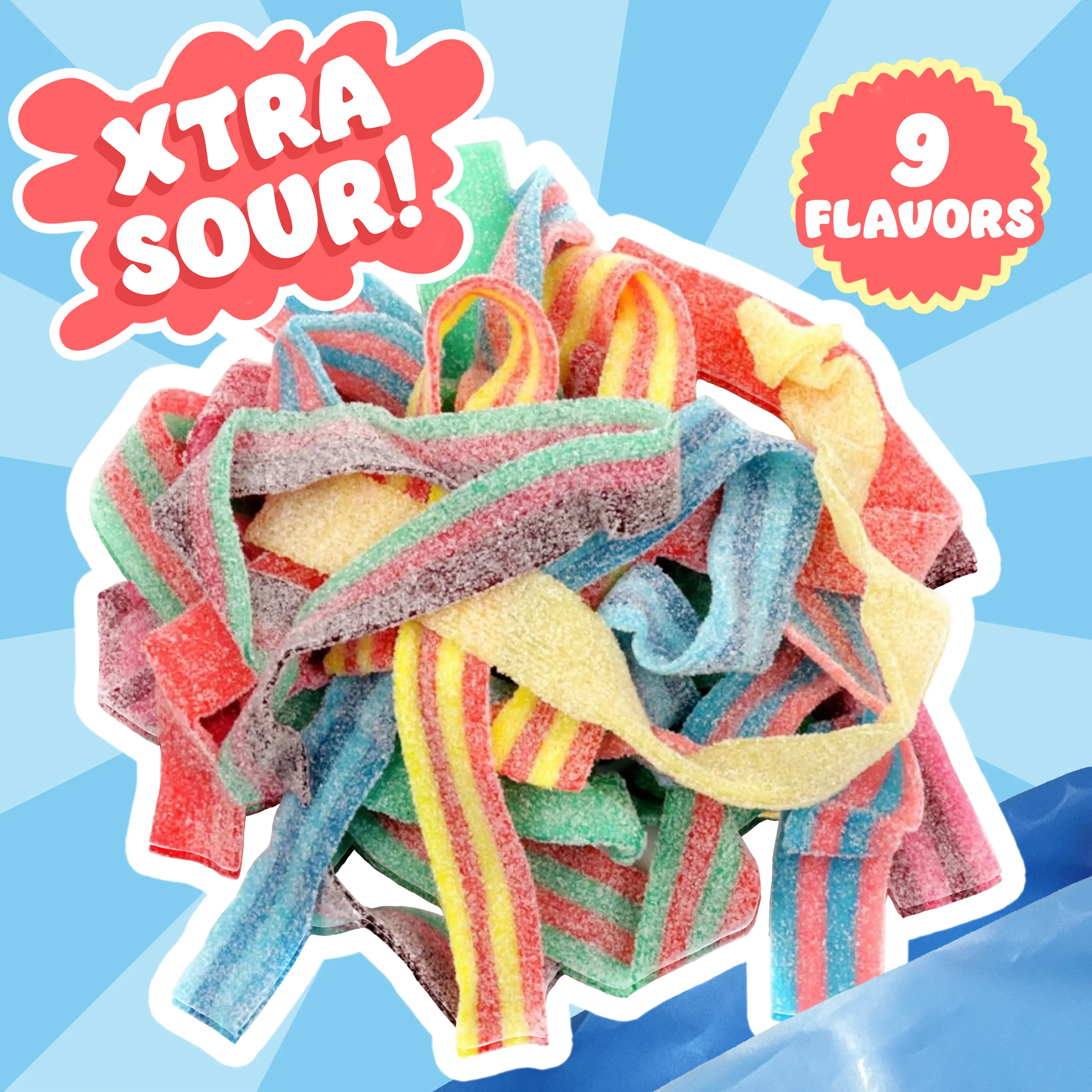Get ready for a serious sour punch. These Xtra Sour Rainbow Belts are coated in intense sour sugar and packed with bold fruit flavors that hit sweet and sour at the same time. Each bag includes a 9 flavor assorted mix, so every bite is different.