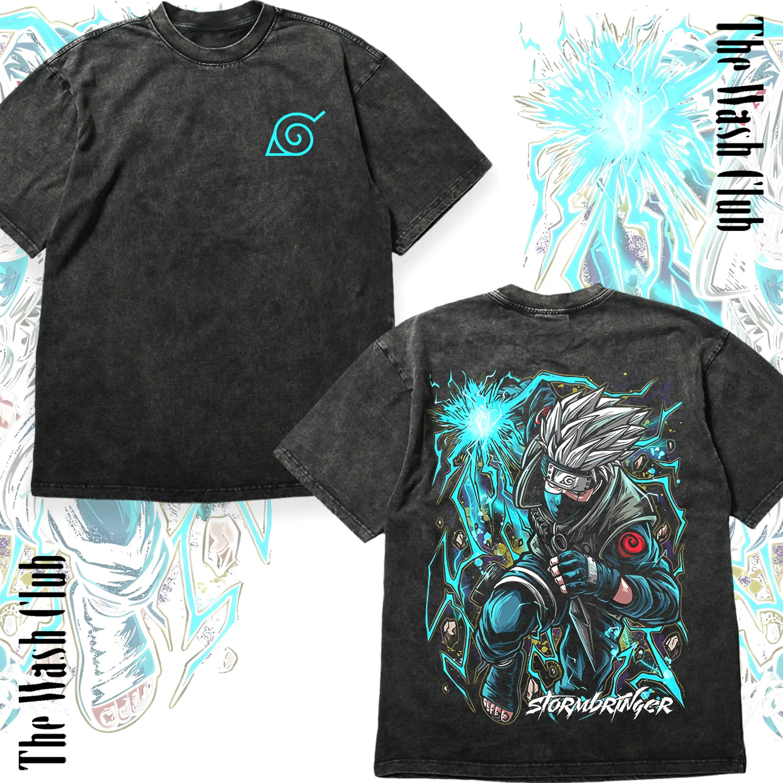 Kakashi Naruto Anime Shirt, Chidori Stormbringer Vintage Acid Wash Streetwear Tee, Oversized Mineral Wash T-shirt, 90s Anime Gift for Him