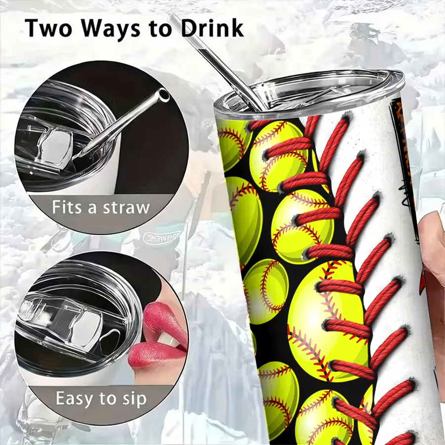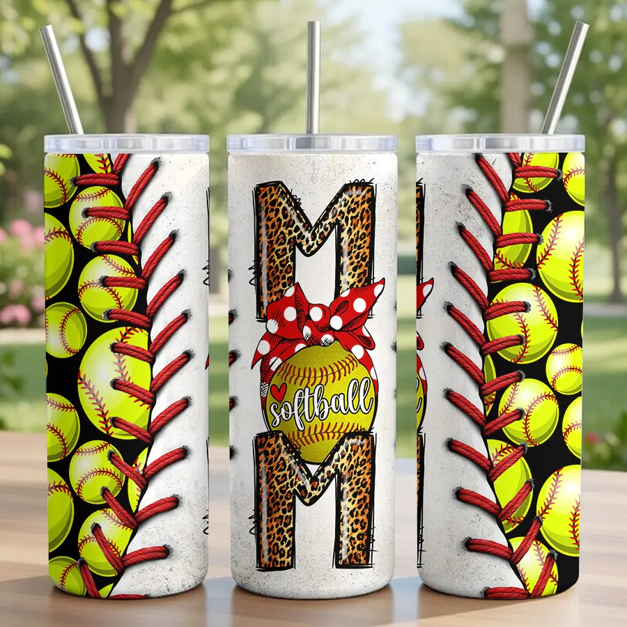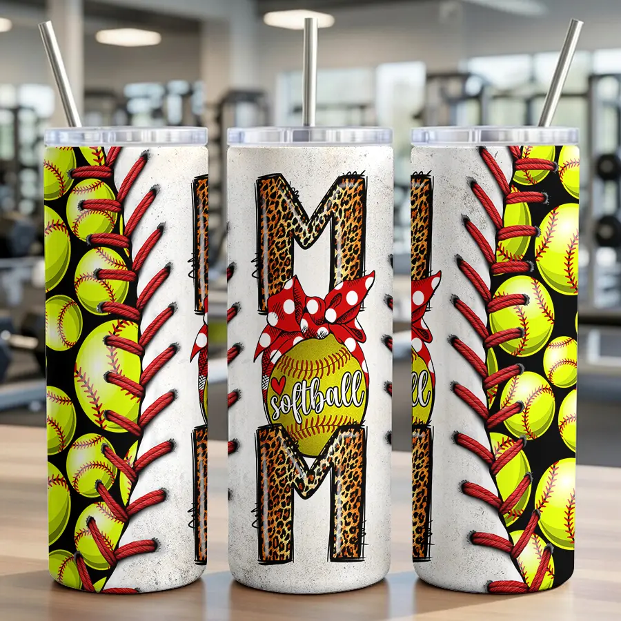 Be the loudest and proudest mama in the stands! This eye-catching tumbler is designed specifically for the dedicated Softball Mom. Featuring a vibrant neon yellow softball wrap, trendy leopard print "M-M" lettering, and a classic red polka-dot bow, it’s the perfect way to show your team spirit while staying hydrated.