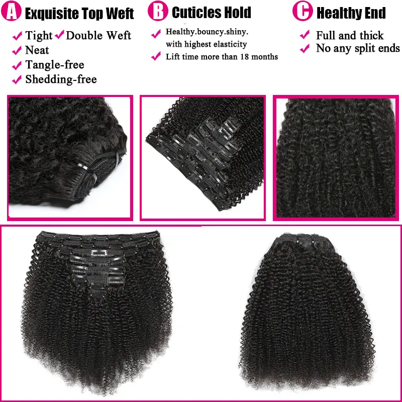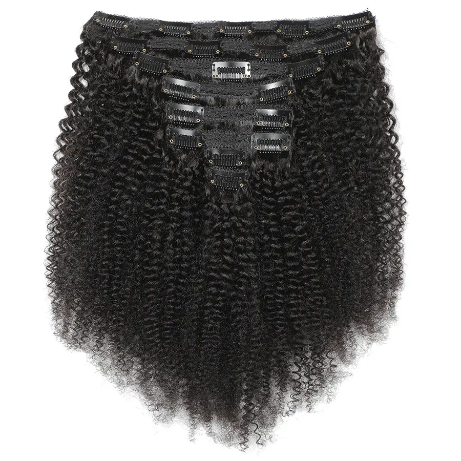 "12-20 Inch Remy Human Hair Clip In Extensions, Silky Straight Ombre Color Afro Kinky Texture, 8 Pcs/Set, Soft & Natural Hair Extensions for Women 120g/Pack "
