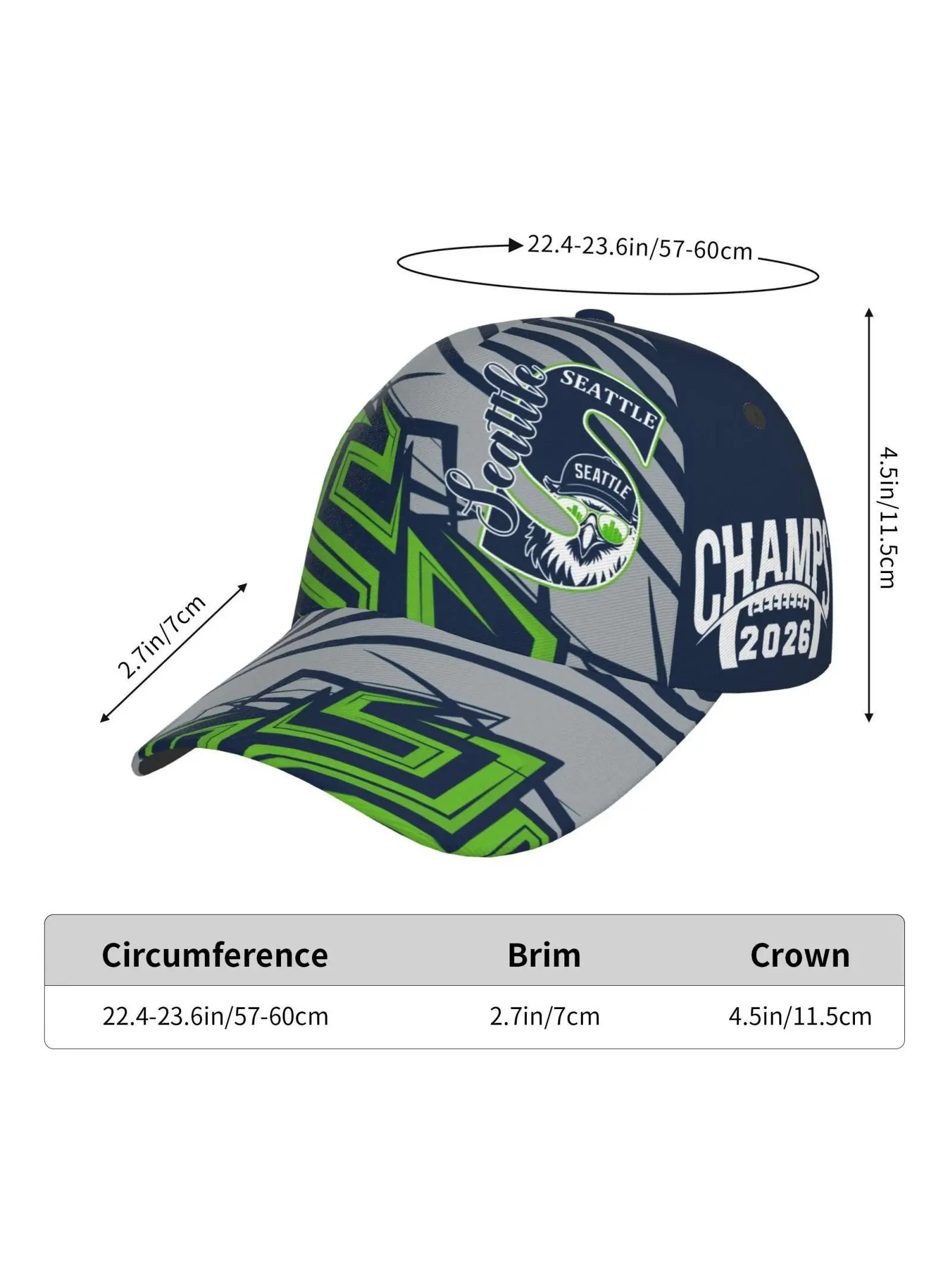 Seattle Logo Baseball Hat Unisex, Vintage Tricolor Decorative Hat, Adjustable Neutral Game Day Hat, Perfect for Fans, Players, Supporters