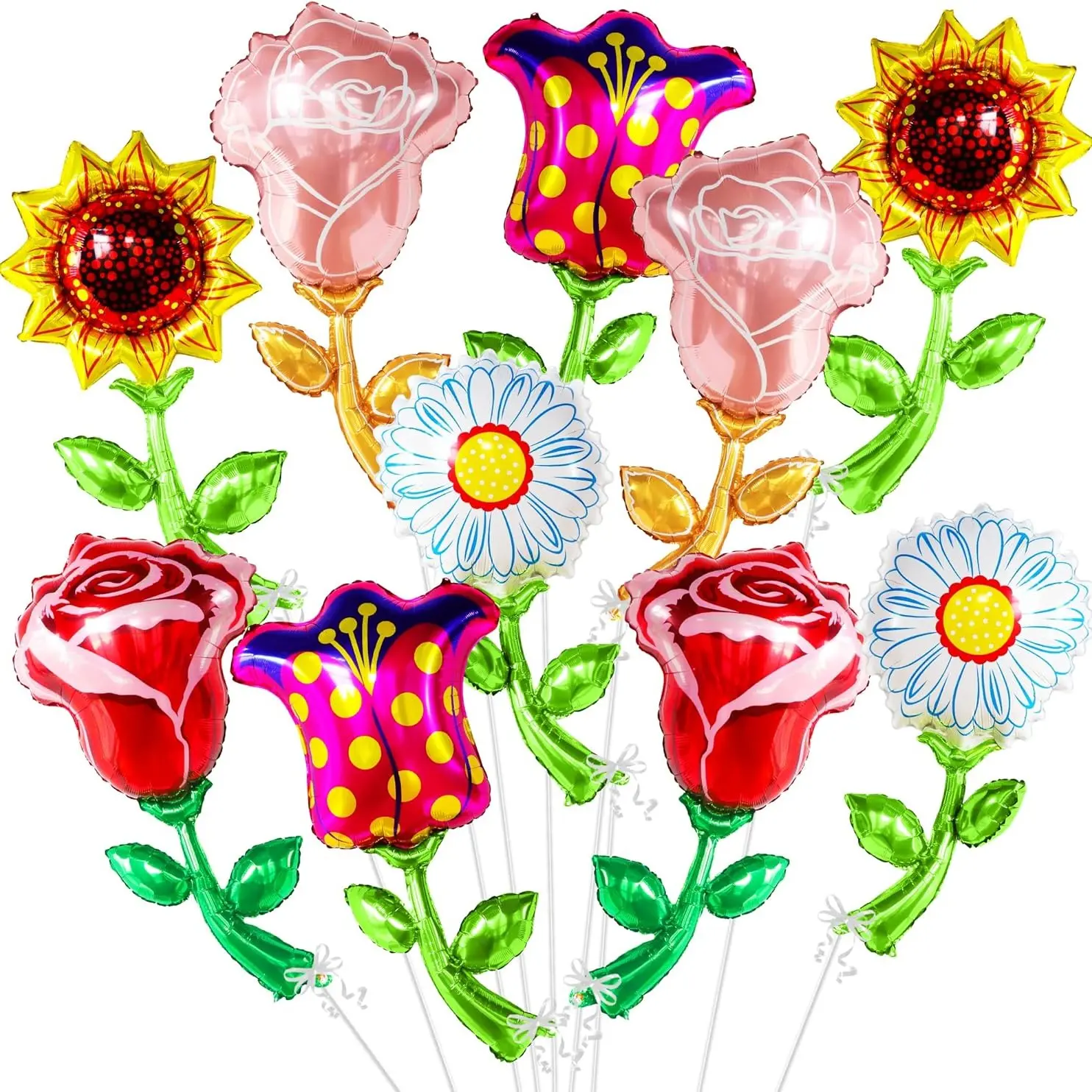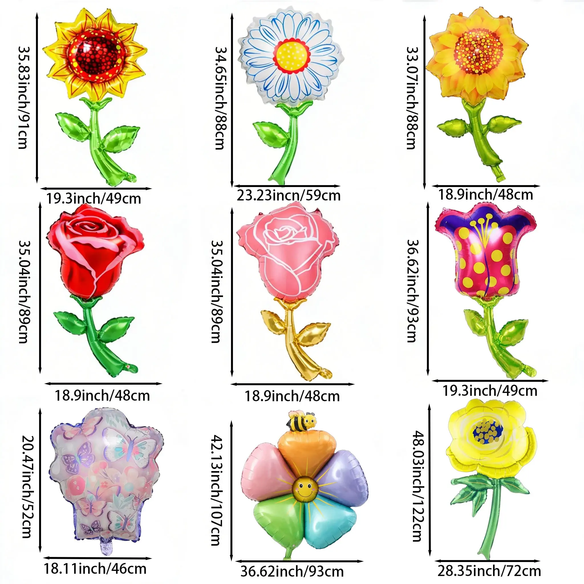 9 Floral Aluminum Foil Balloons for Kids Birthday Party, Outdoor Camping Decor, Wedding Reception, Valentine's Day, Mother's Day, Graduation