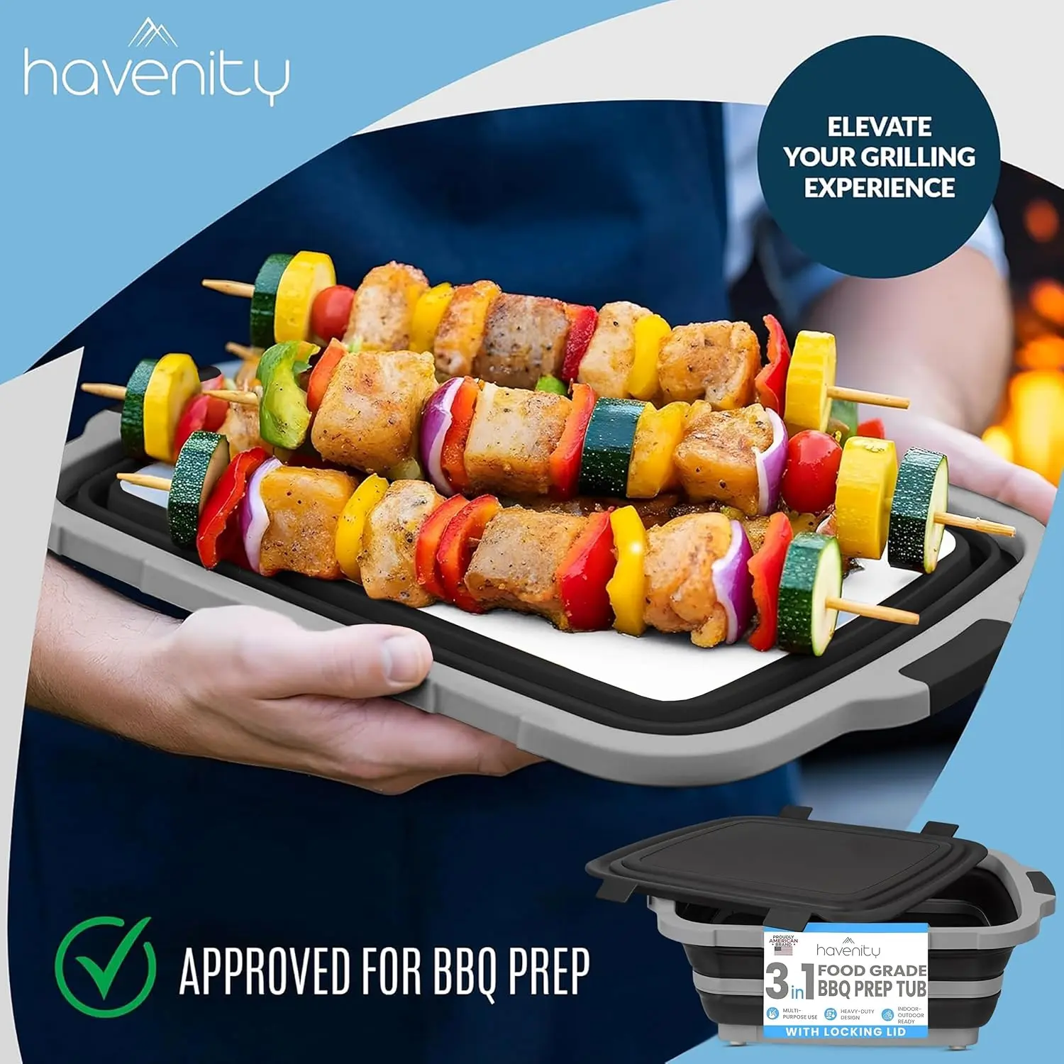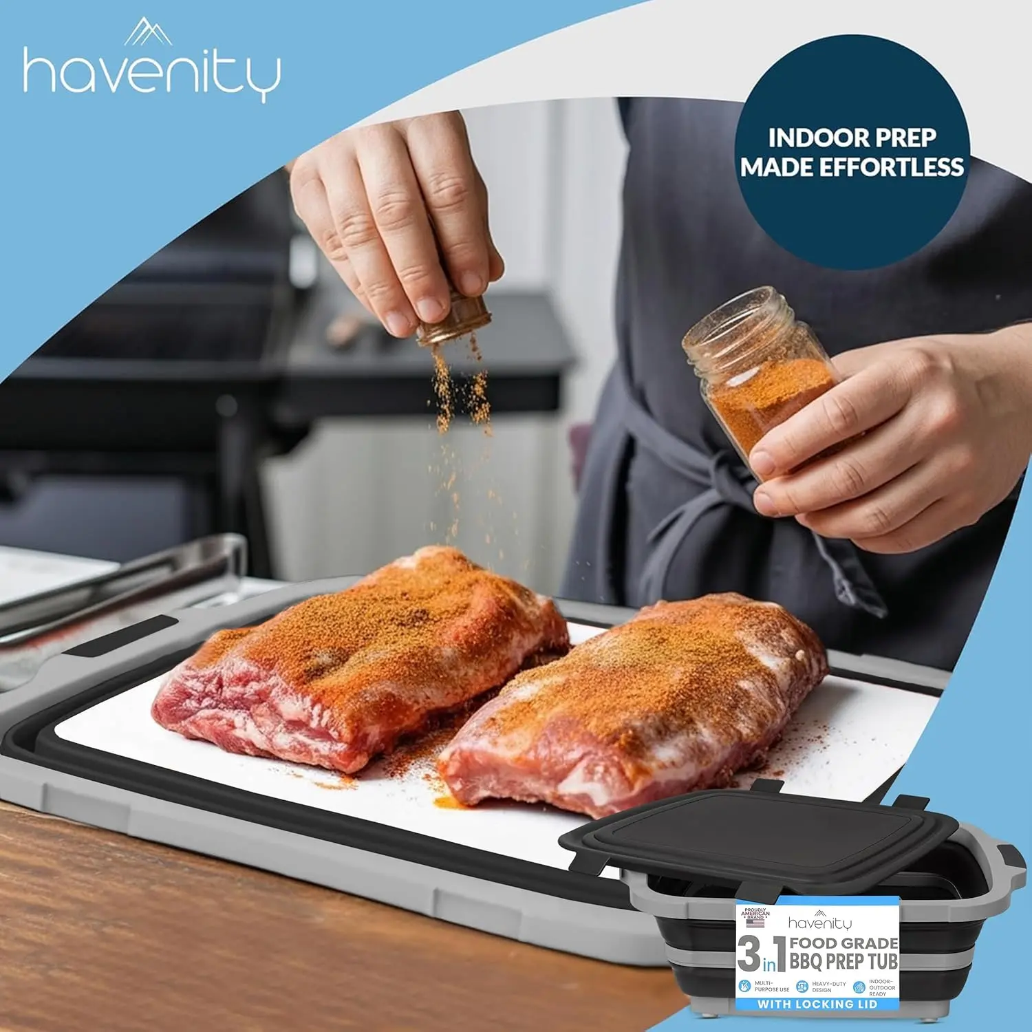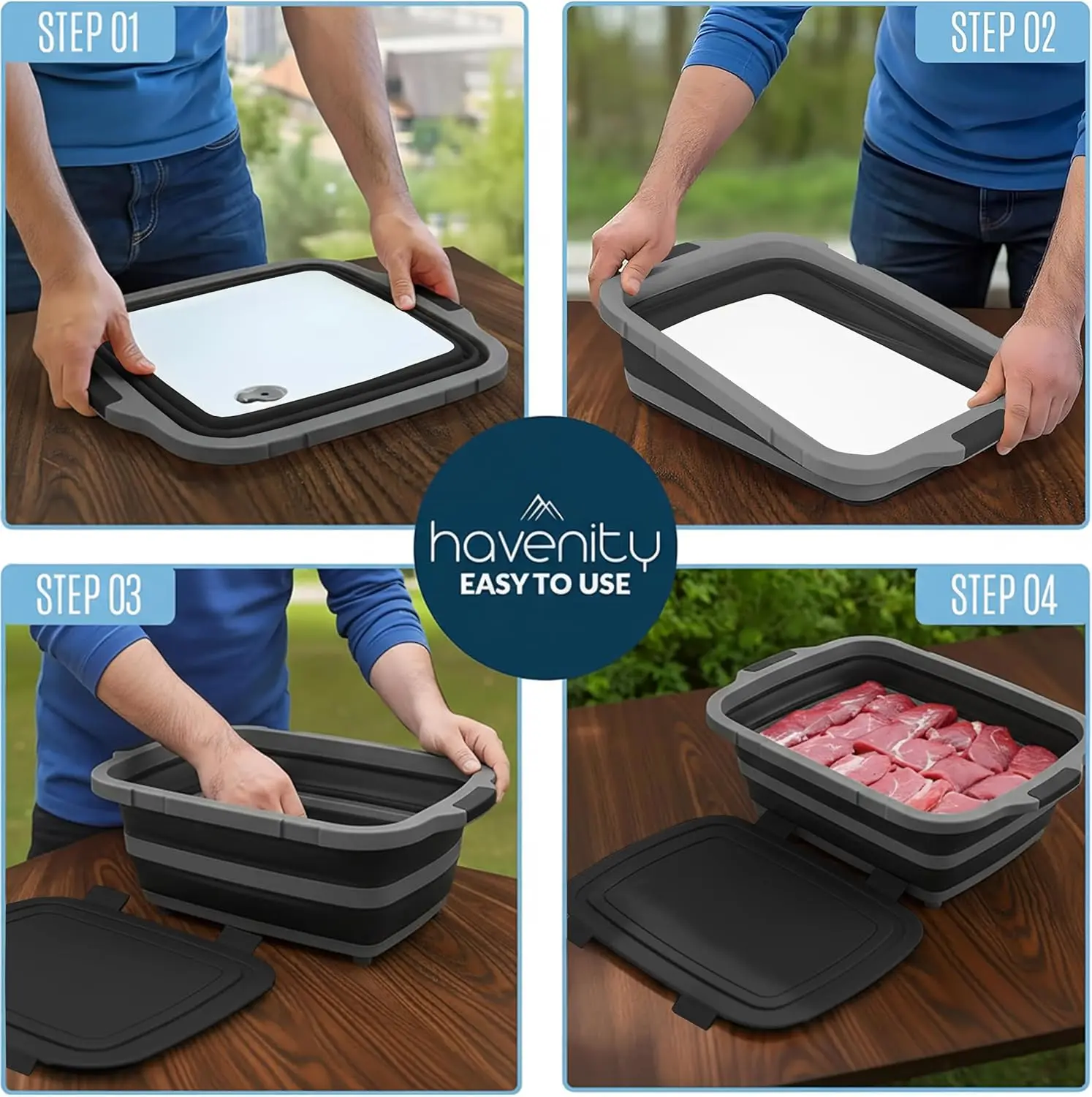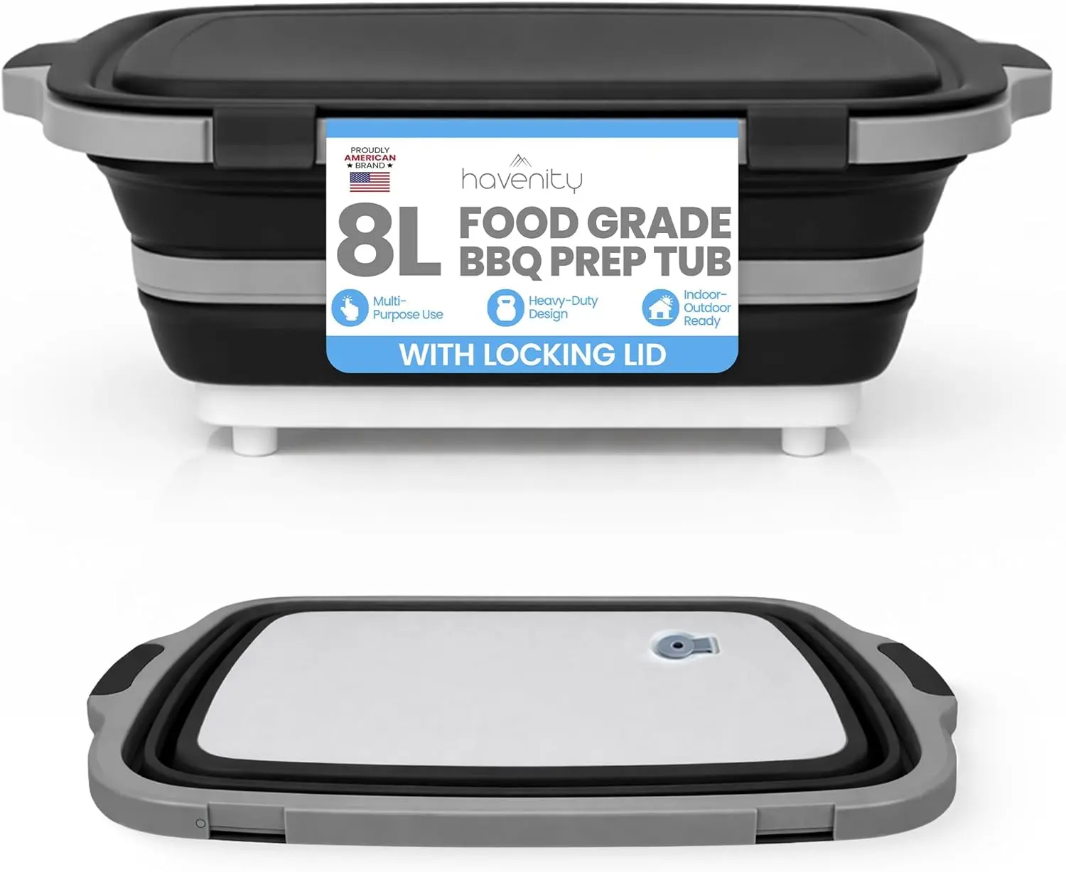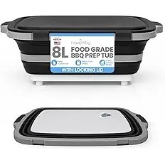 This 8L collapsible BBQ prep tub is designed for both indoor kitchen use and outdoor activities. Its foldable design collapses down to 1.2 inches thick to save space and is easy to carry with handles, making it convenient for camping, picnics, and grilling.