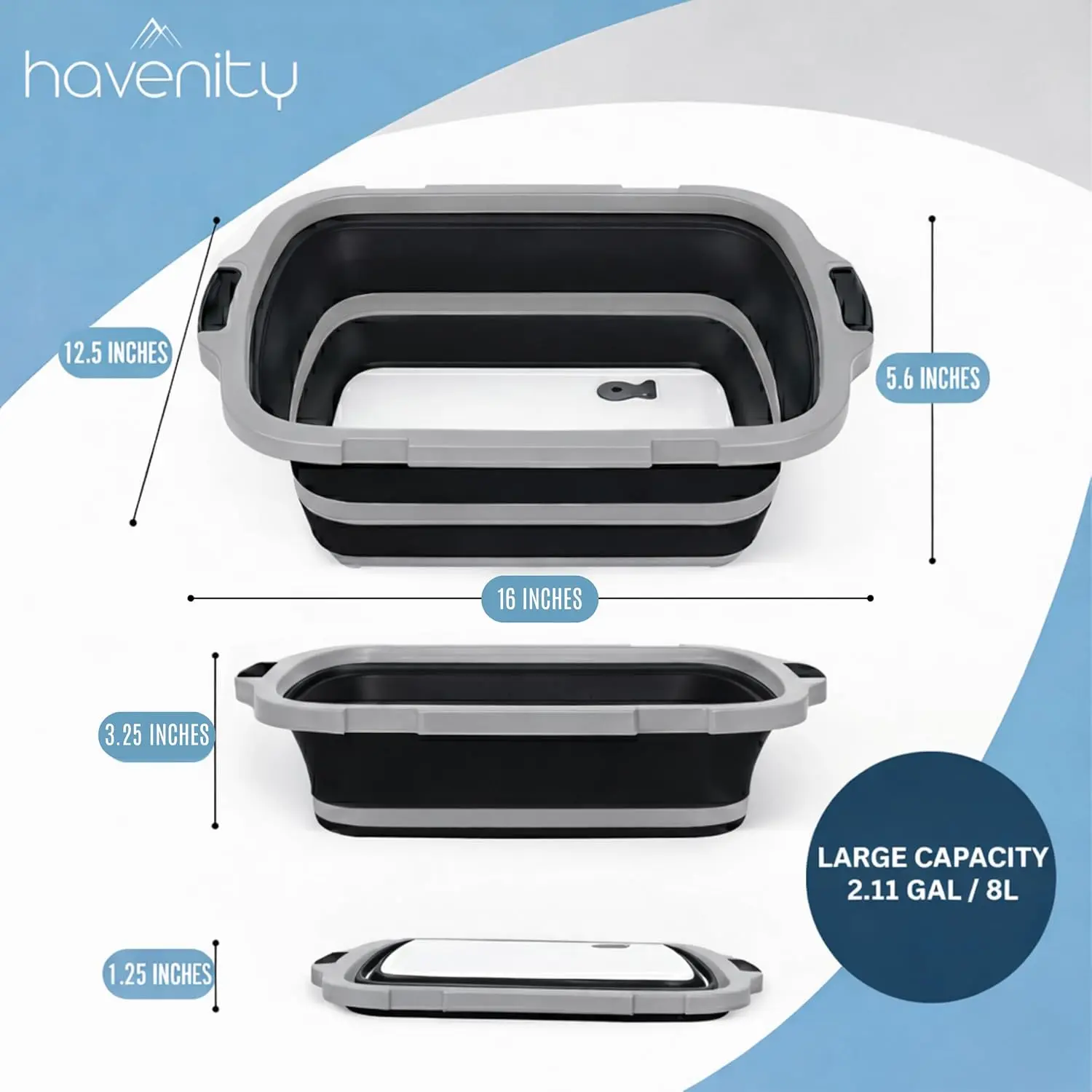 Cleaning is simple and hassle-free: the tub and cutting board can be washed by hand or in the dishwasher. Its foldable design also ensures it can be stored easily, saving up to 80% space under sinks or cabinets.