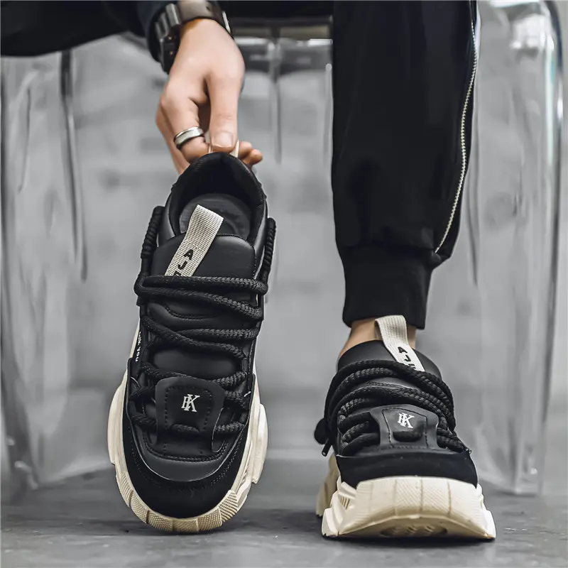 Trendy color-blocked thick-soled casual sports shoes for men, featuring a stylish low-top round toe with lace-up design, lightweight, comfortable and breathable, suitable for outdoor sports and hiking.