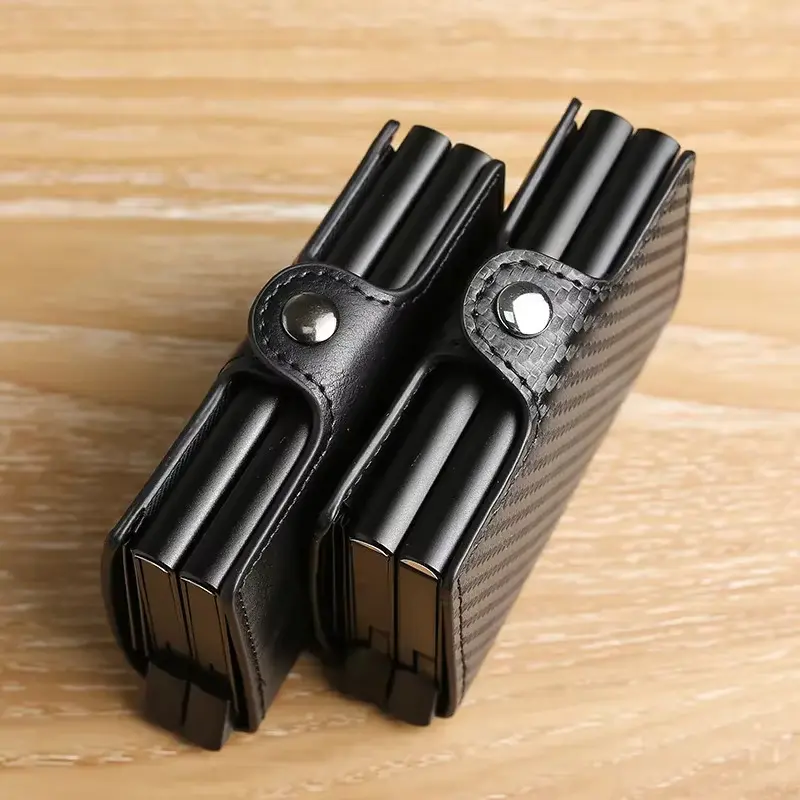 This wallet is designed for men who need ample storage. It features a double-layer design, ensuring you can carry multiple cards and IDs effortlessly. The carbon fiber material adds a sleek, modern touch. Perfect for those who value both style and functionality.